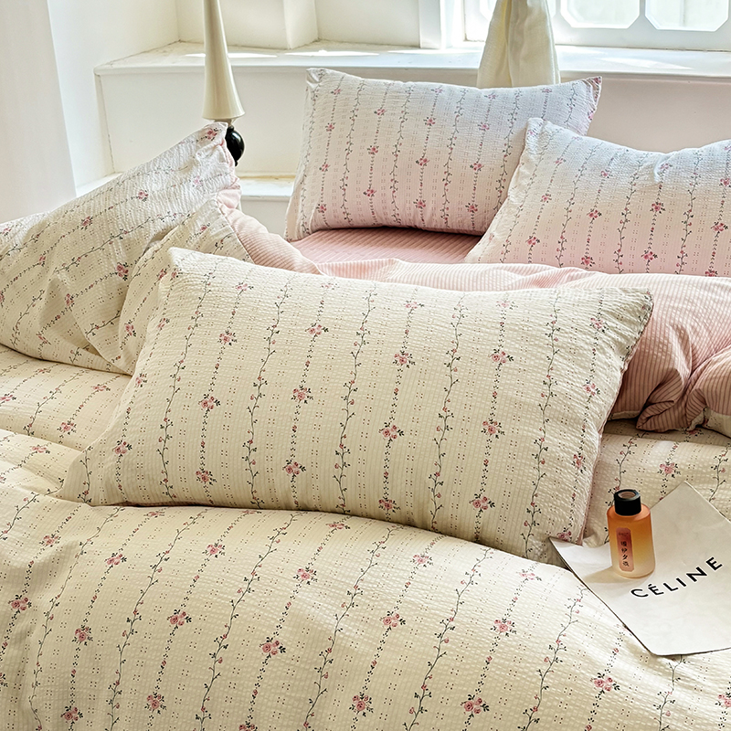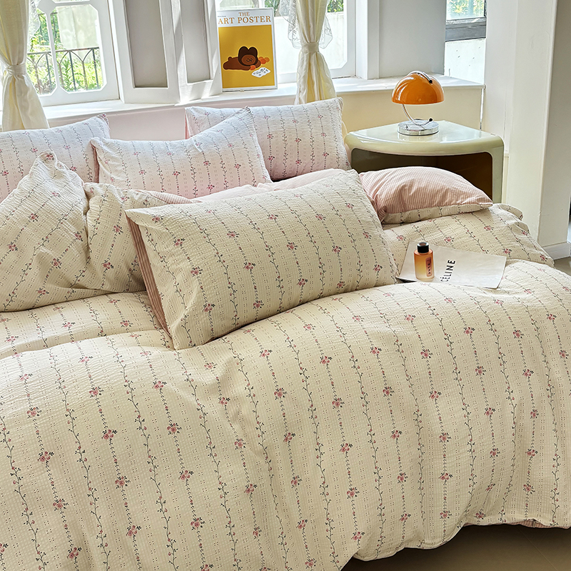 商品名称:满座家居 2025新款亲肤舒适小清新泡泡棉提花床盖四件套 沐歌
