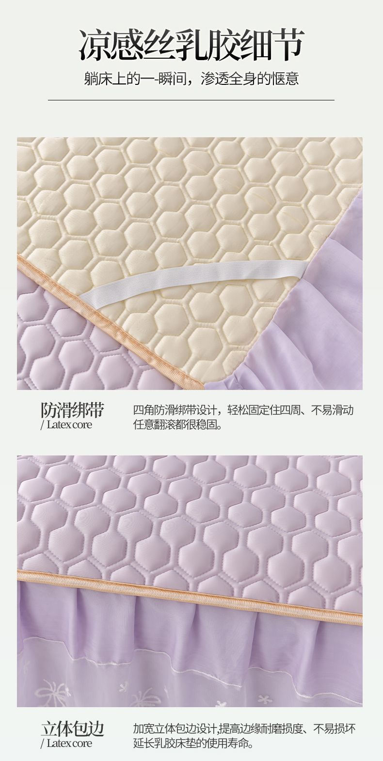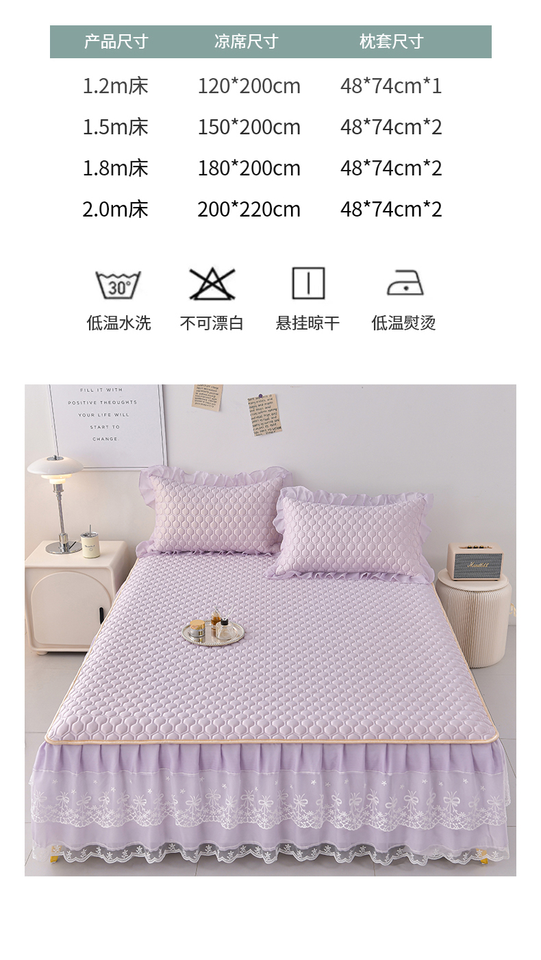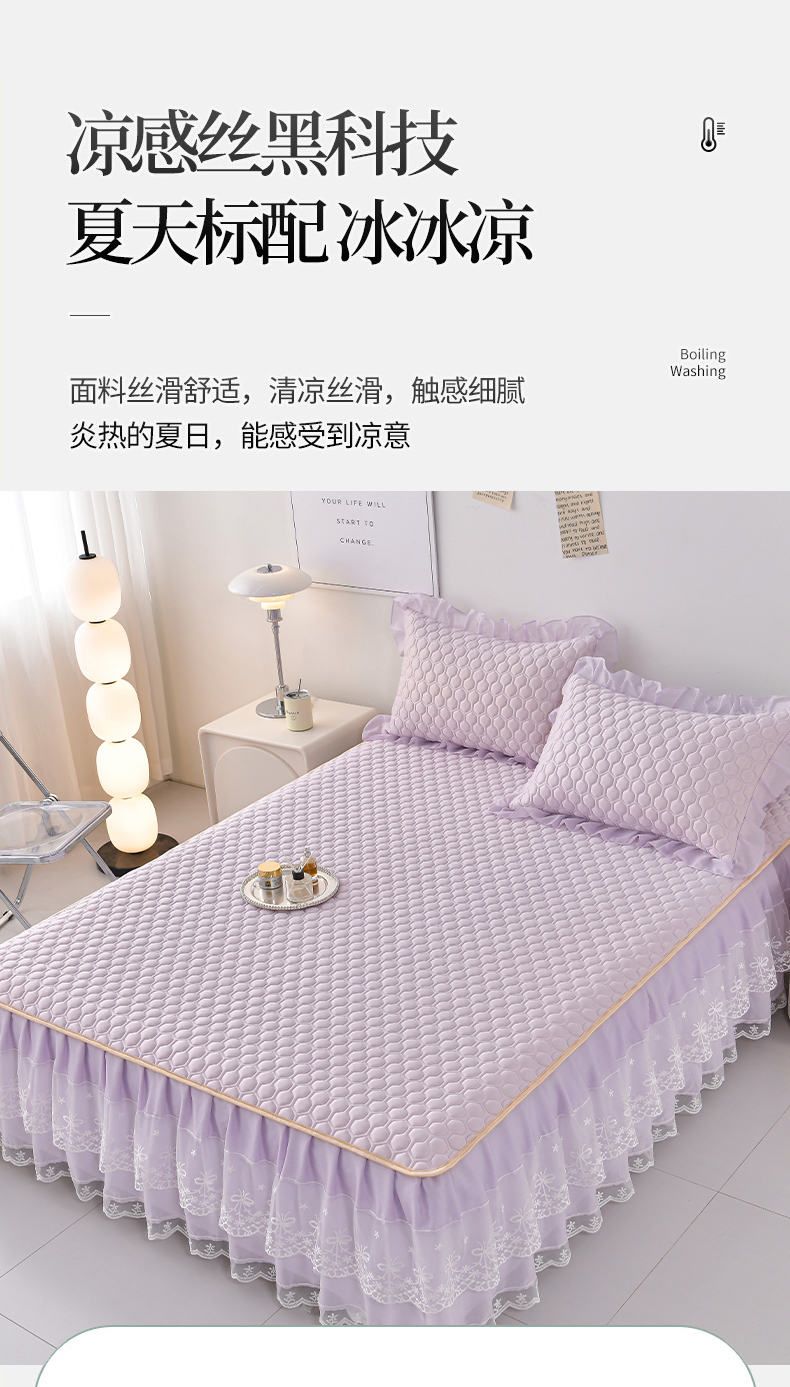 商品名称:民新家纺 2025新款凉感丝乳胶床裙凉席唯美系列 唯美-云紫