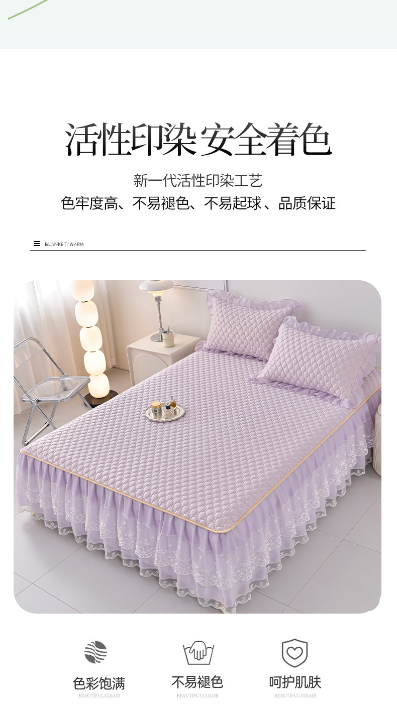 (总)民新家纺 2025新款牛奶绒夹棉床裙三件套,浪漫时光-浅紫,浪漫时光-灰,浪漫时光-大红,浪漫时光-浅粉,浪漫时光-浅蓝,浪漫时光-浅绿,浪漫时光-浅米黄