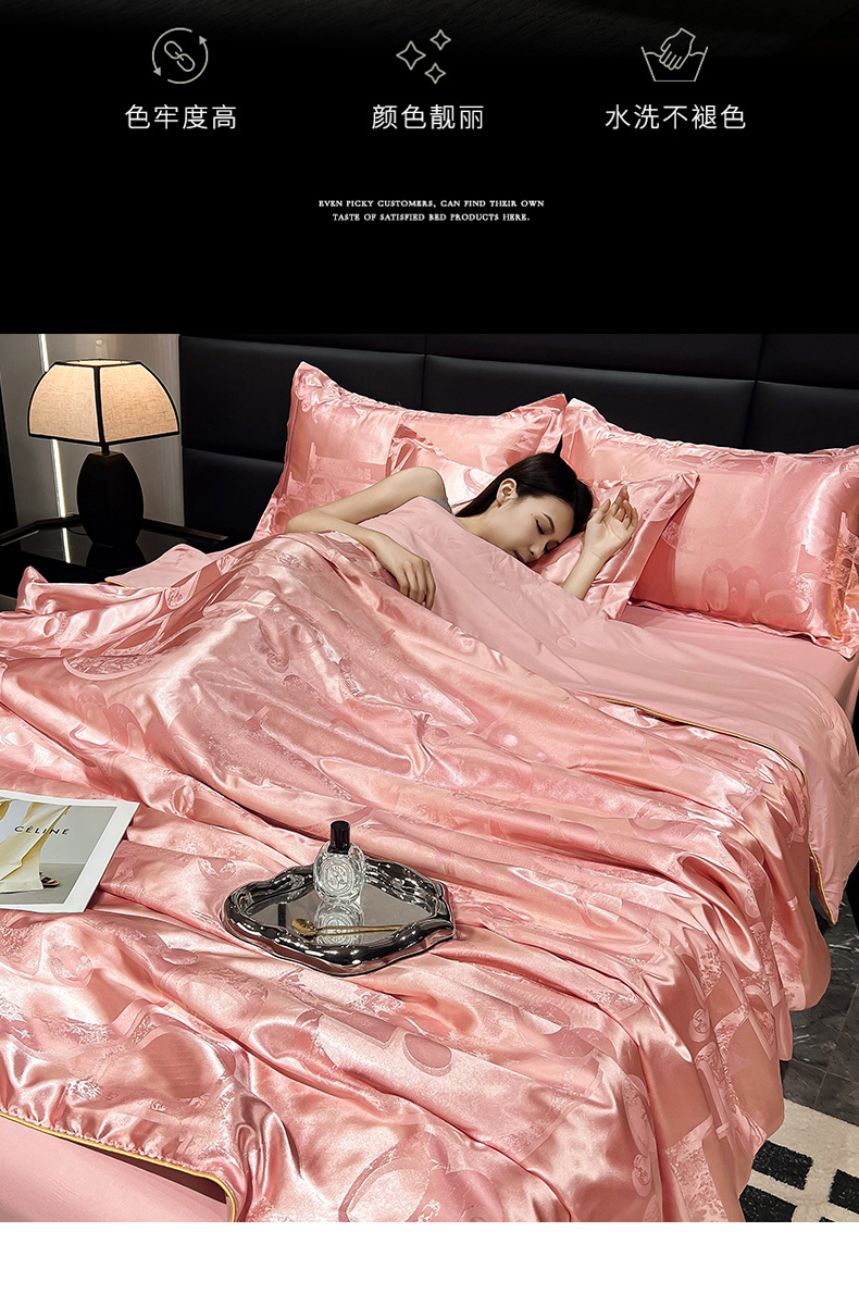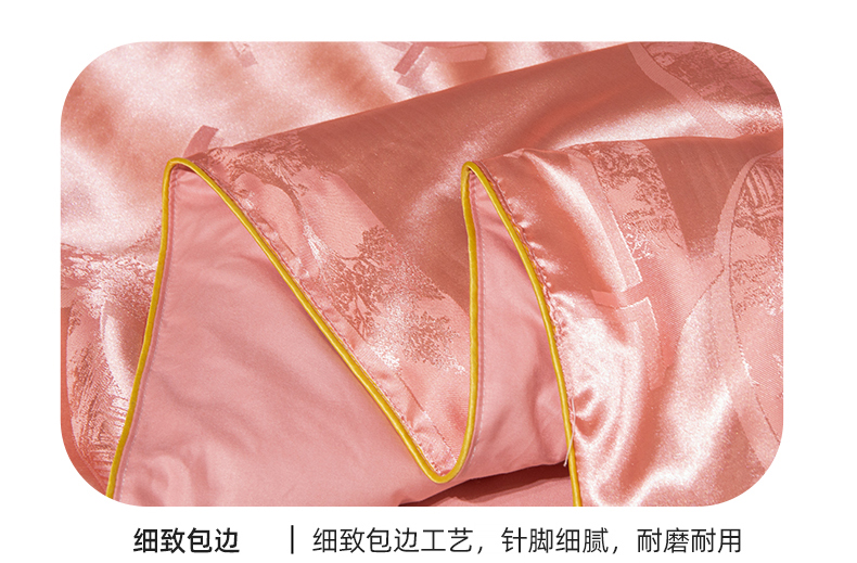 商品名称:七夜居 2025新款夏凉被空调被贡缎提花水洗真丝夏被四件套 城之暮光-豆沙