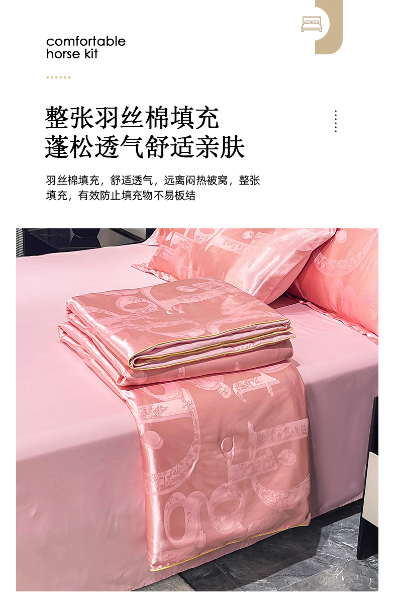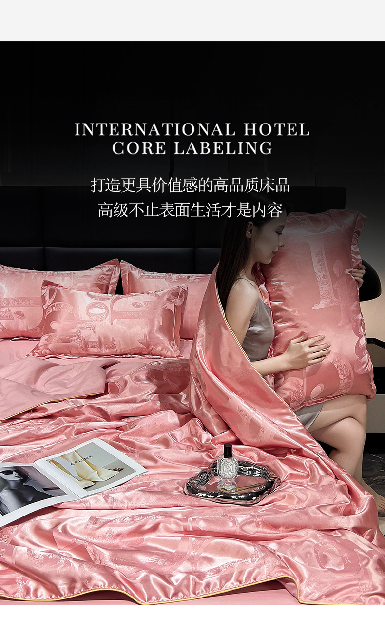 七夜居 2025新款夏凉被空调被贡缎提花水洗真丝夏被四件套 城之暮光-豆沙