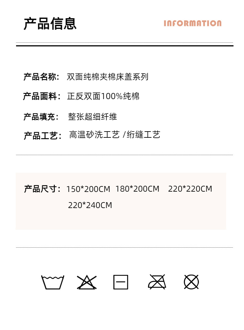 200cmx220cm配普通枕套一对 | ¥150.00 |