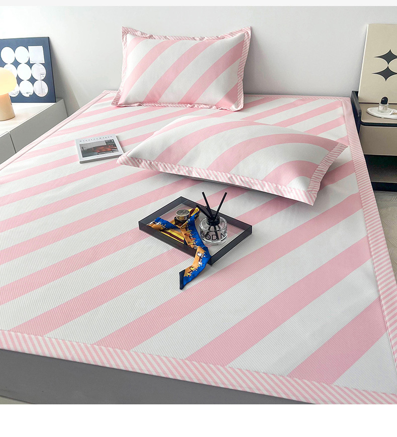 倾慕家纺 2024新款北欧简约印花夹棉凉席 洛林-粉