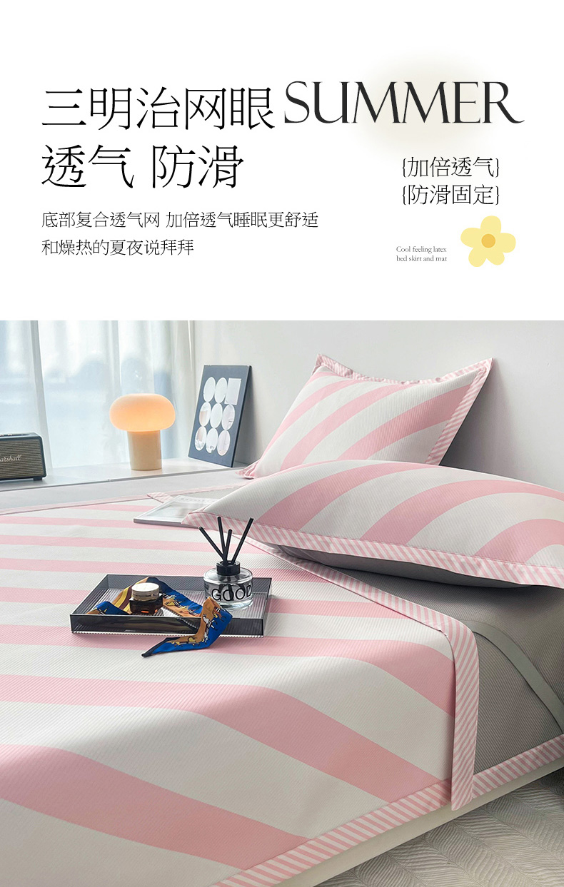 商品名称:倾慕家纺 2024新款北欧简约印花夹棉凉席 洛林-粉
