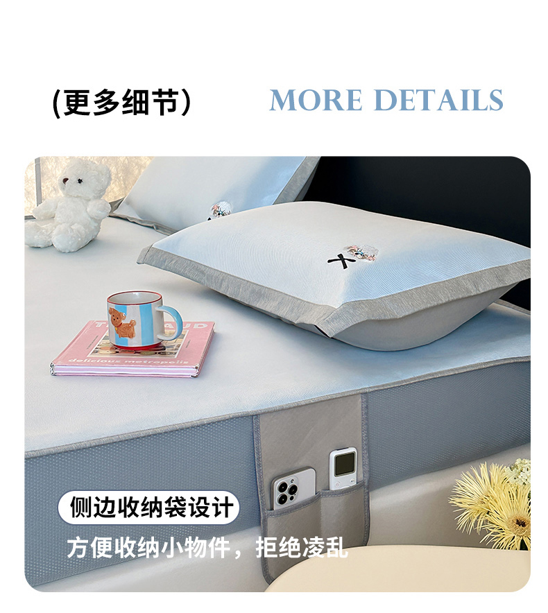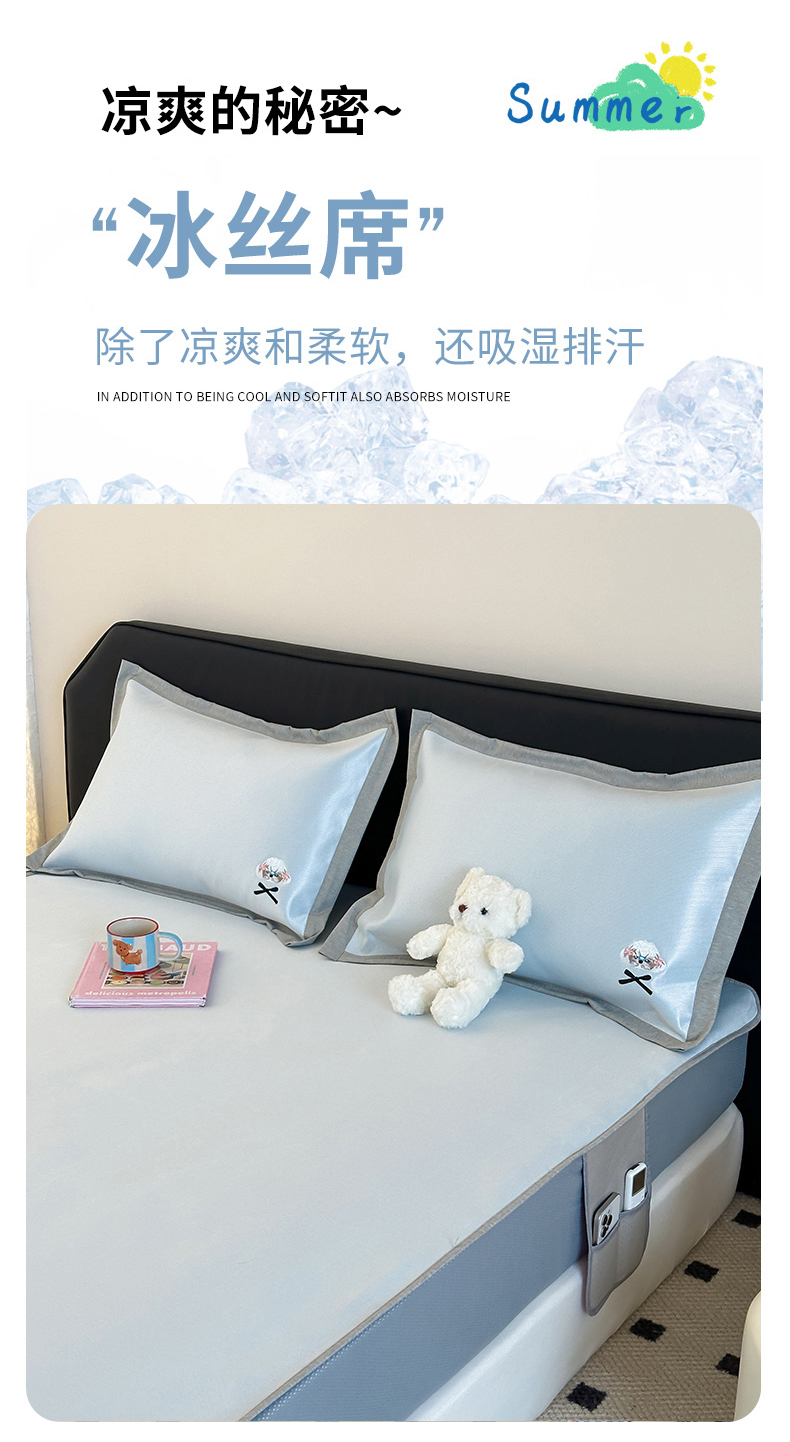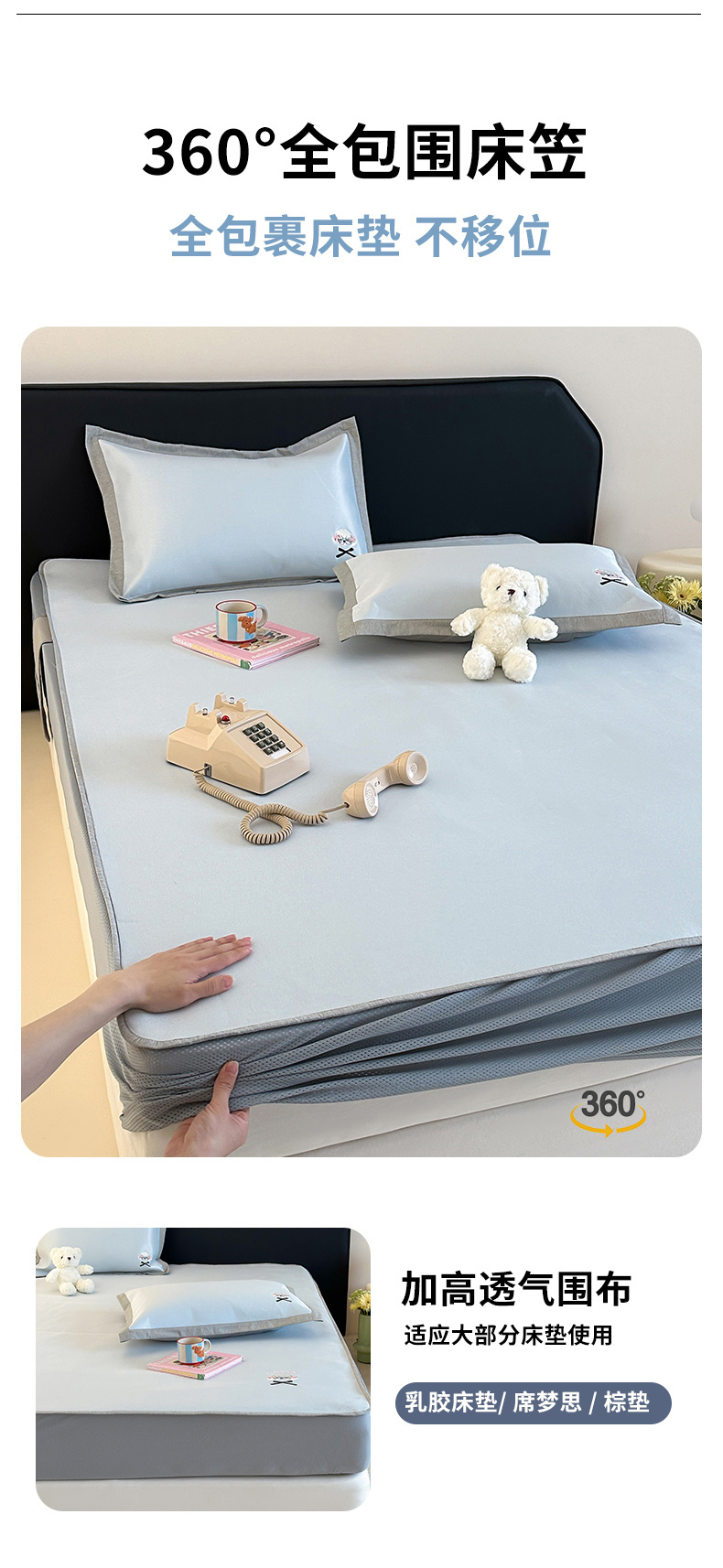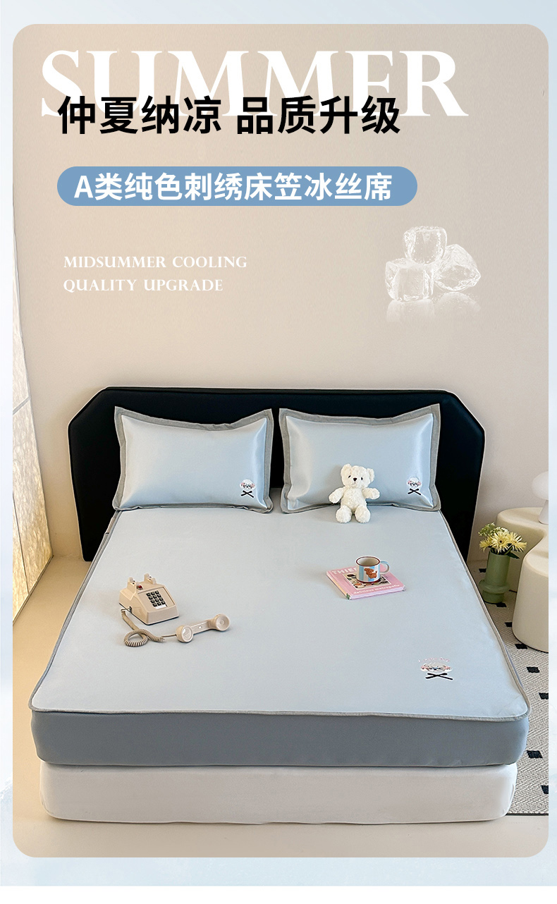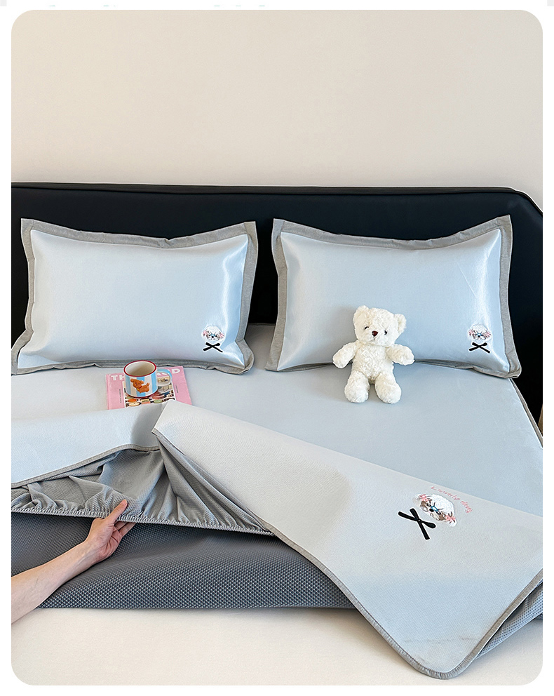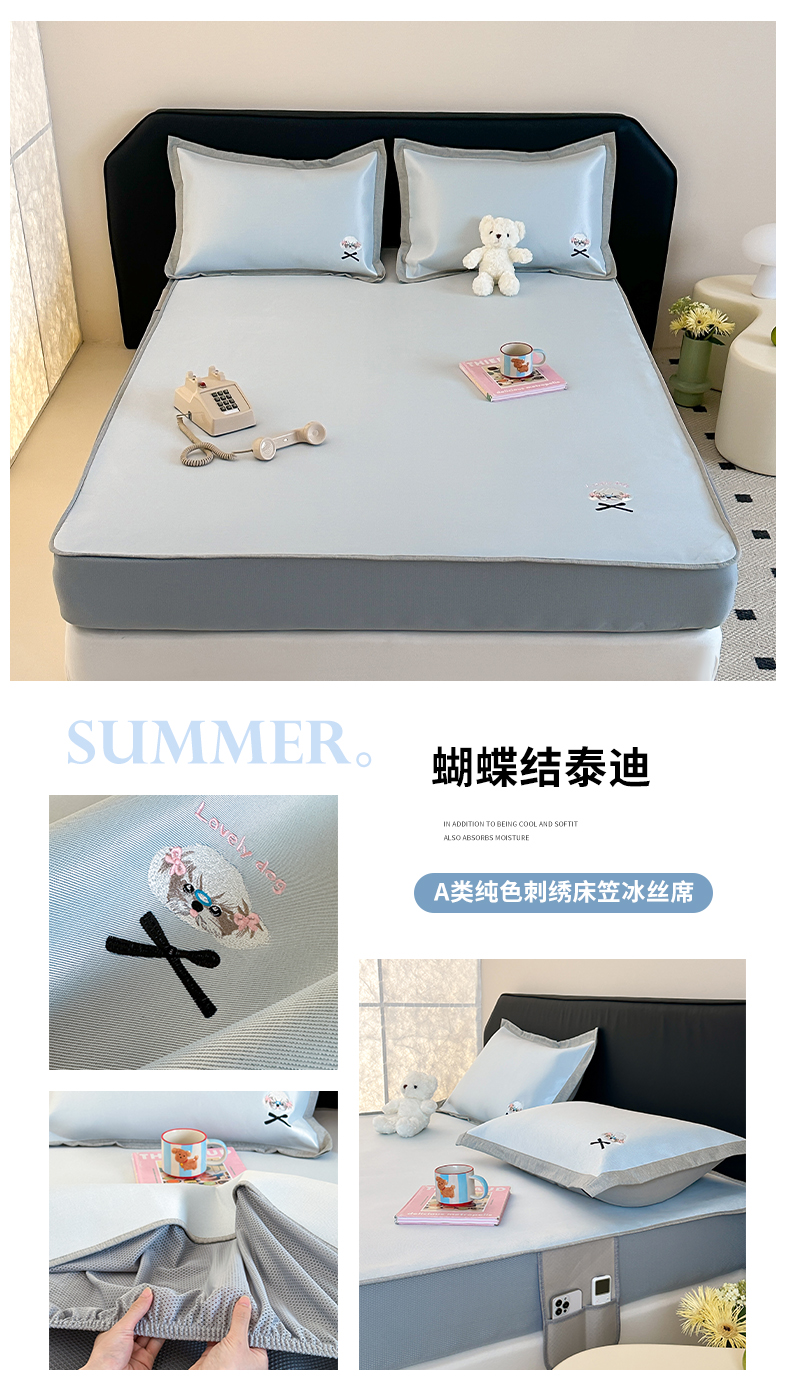 昔可家纺 2024新款A类900D纯色绣花床笠款冰丝席 蝴蝶结泰迪