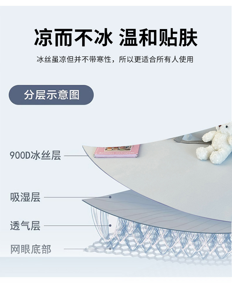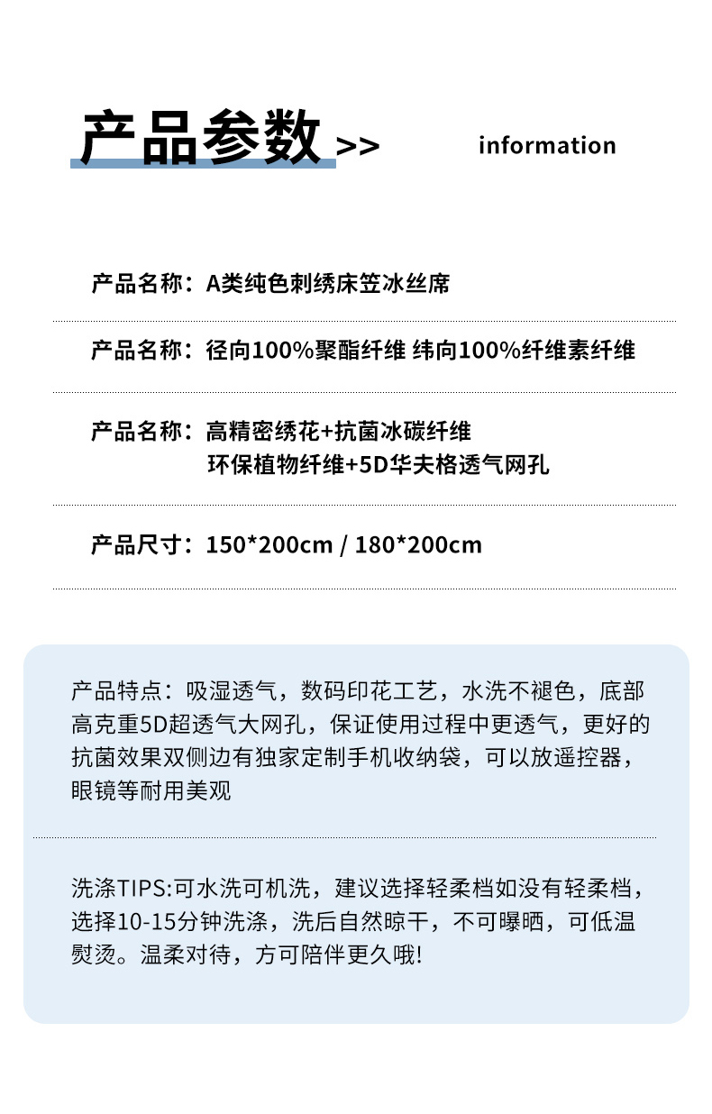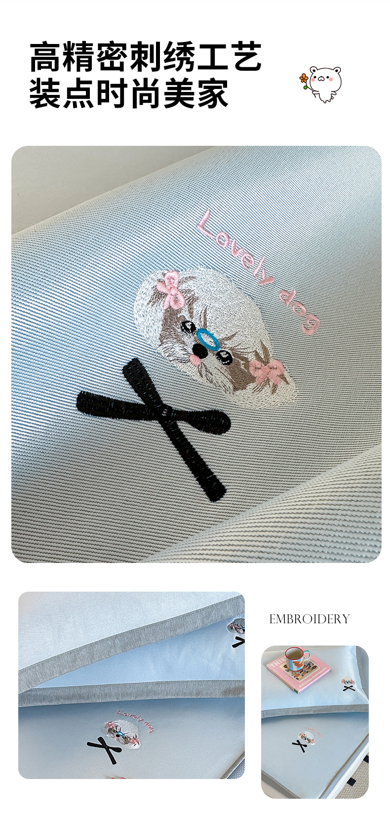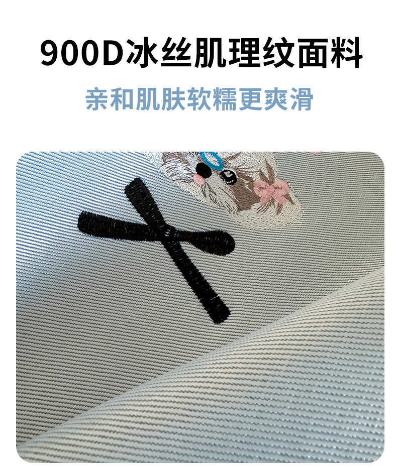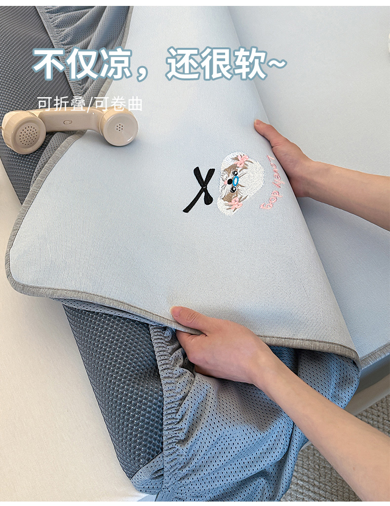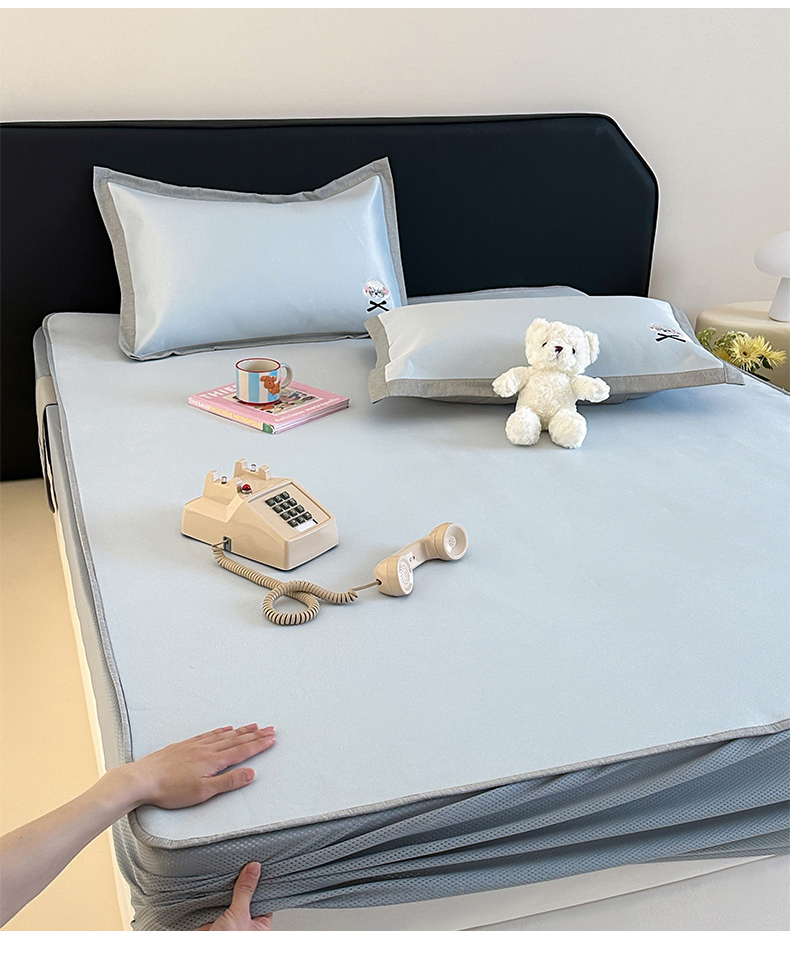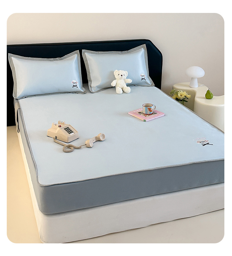 昔可家纺 2024新款A类900D纯色绣花床笠款冰丝席 蝴蝶结泰迪