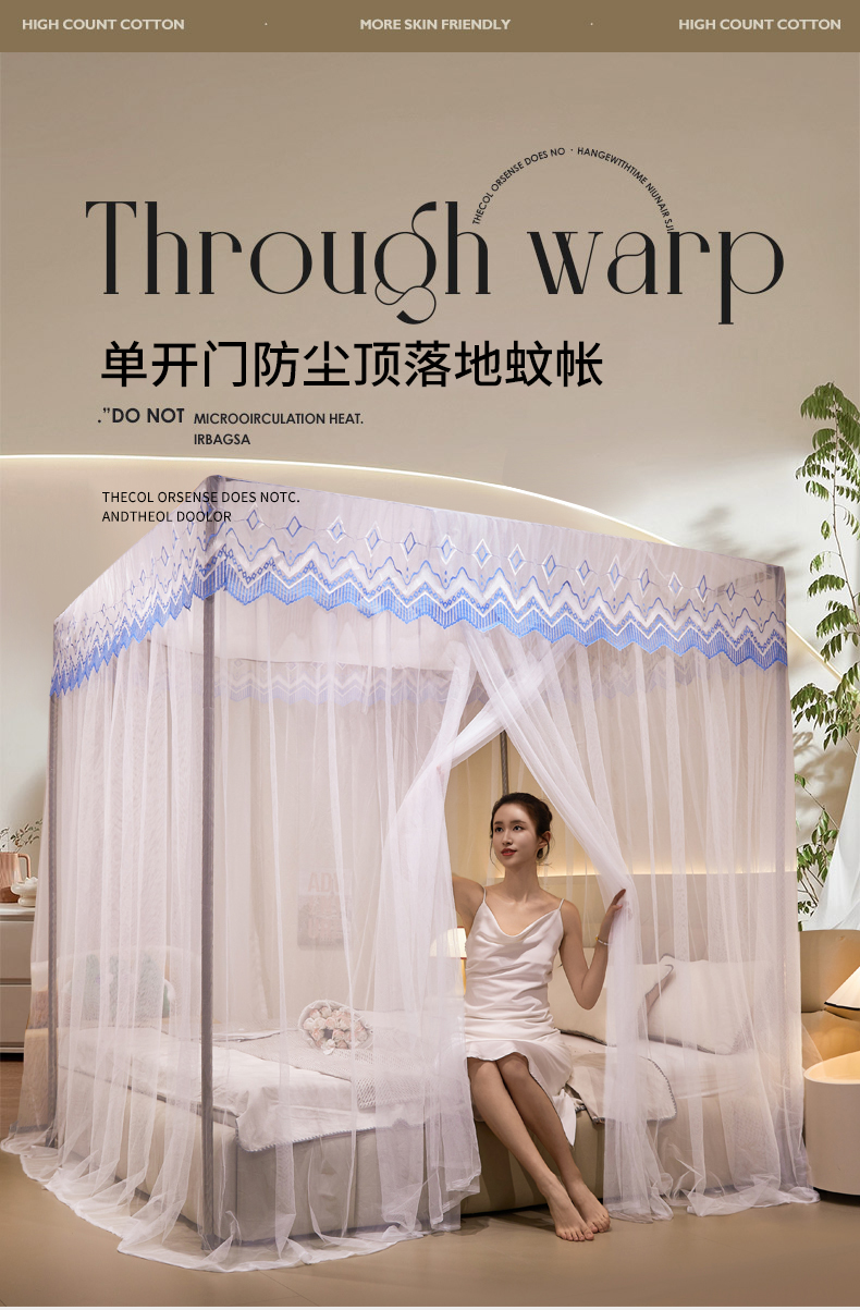 (总)初心家纺 2025新款单开门防尘顶落地蚊帐-玉锦