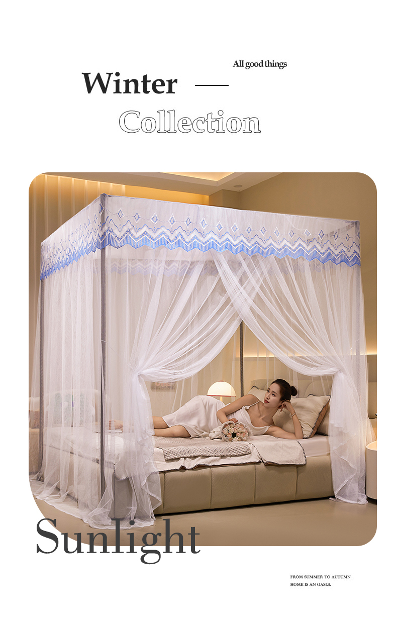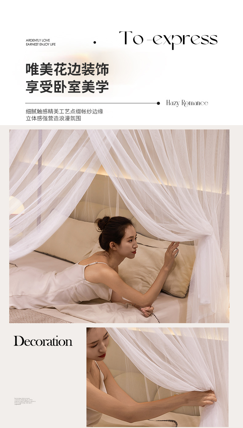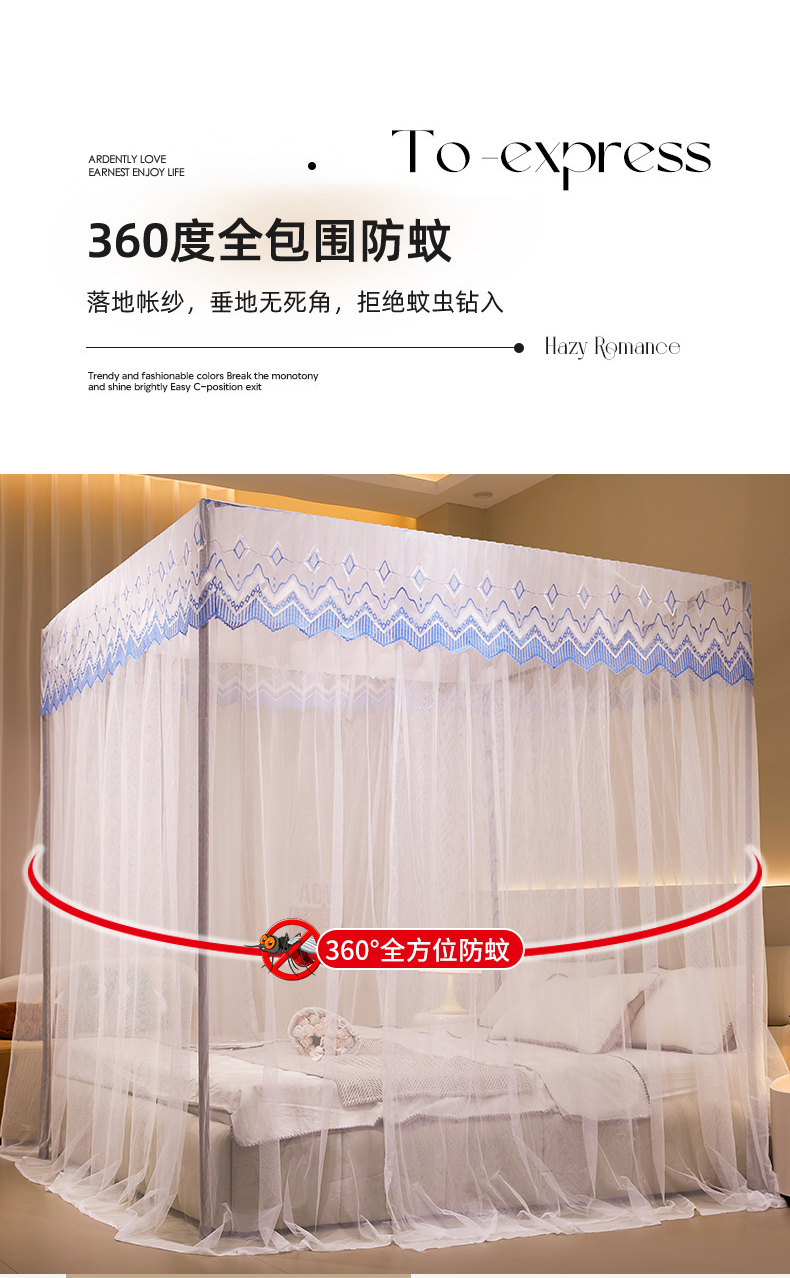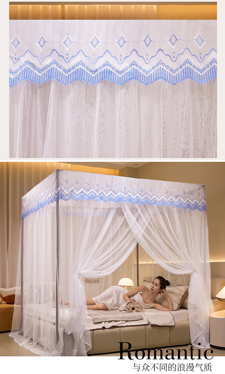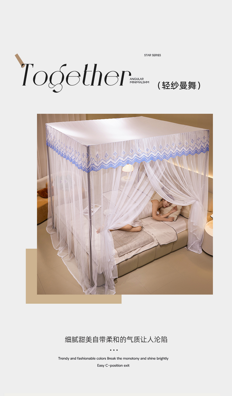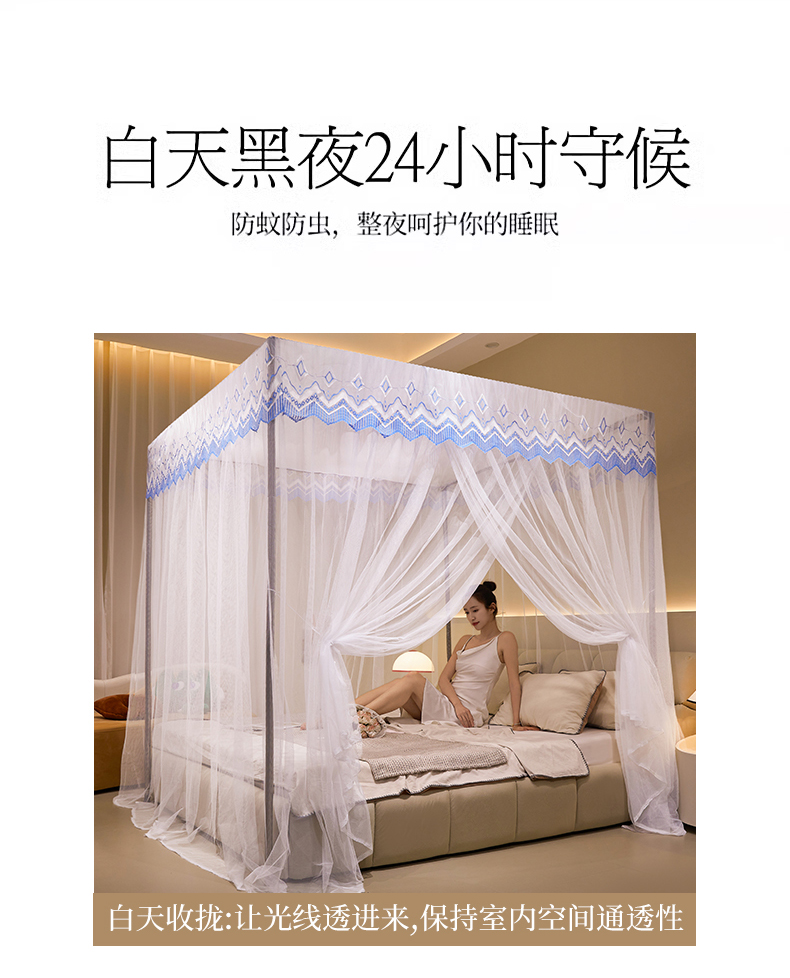 (总)初心 2025新款落地宫廷蚊帐-粉黛佳人,白色,粉,米黄,水蓝,玉色,紫色