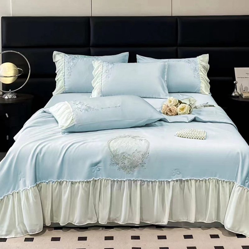伊人居 2024新款蕾丝款夏被四件套-梦娜系列 梦娜-湖水兰