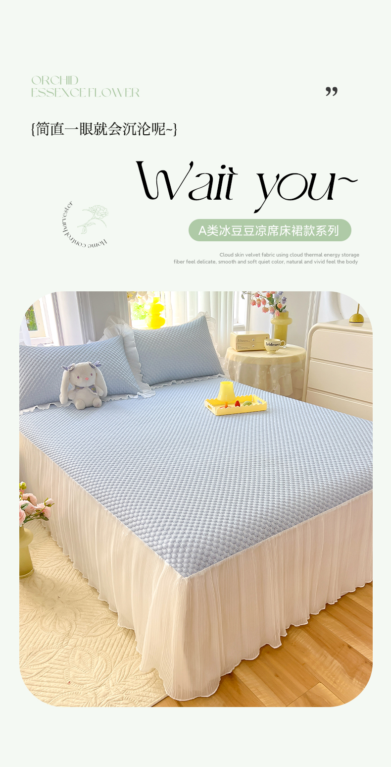 商品名称:逸尚阁 2025新款A类冰豆豆凉席床裙款系列 冰豆豆-宝石蓝