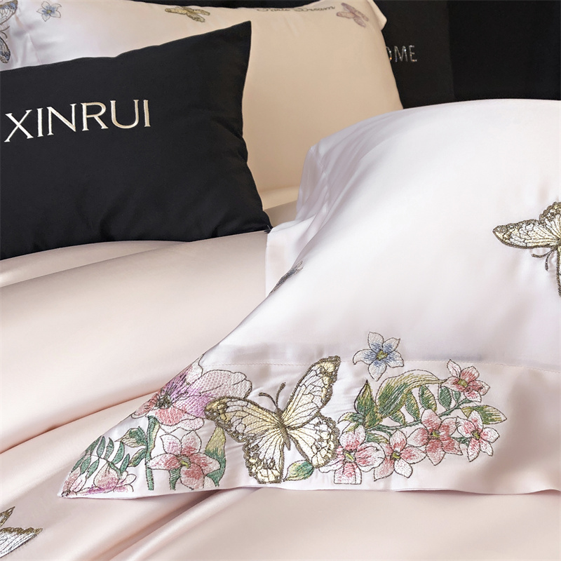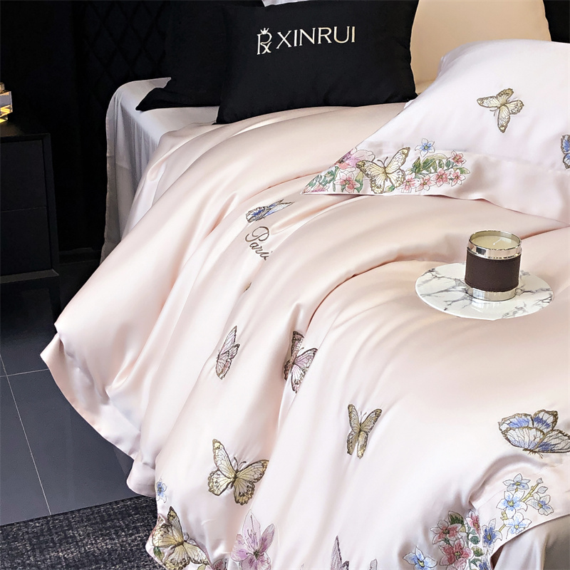 商品名称:馨蕊家居 2024新款80SLF奥地利兰精天丝四件套-蝶舞花间 蝶舞花间-蔷薇粉