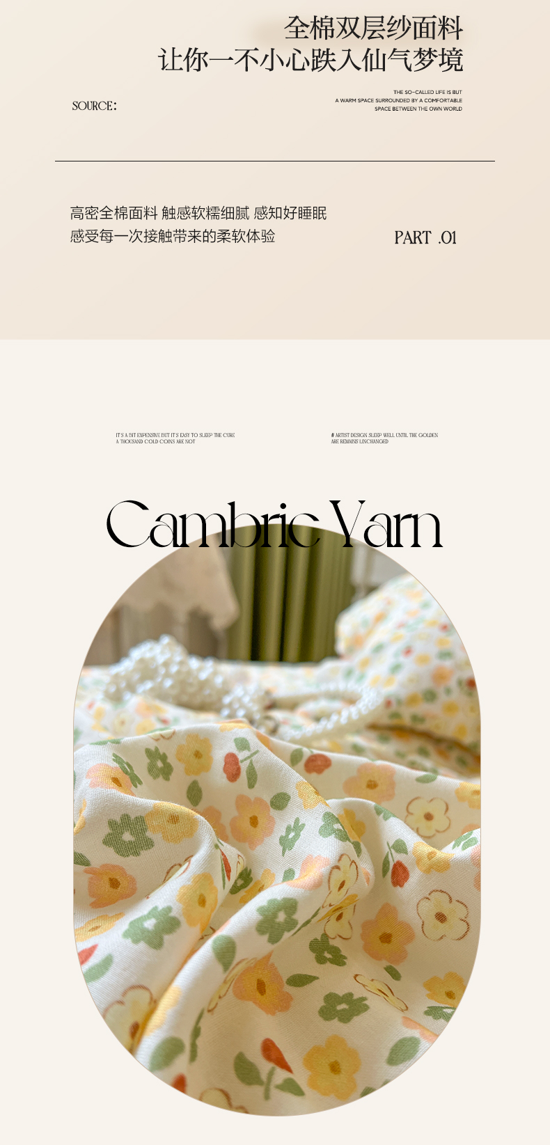 当前位置: 91家纺网 > 商品网购 > 床品套件 > 四件套 > 双层纱四件套 > 麒豆豆 2024款全棉双层纱四件套花蔓