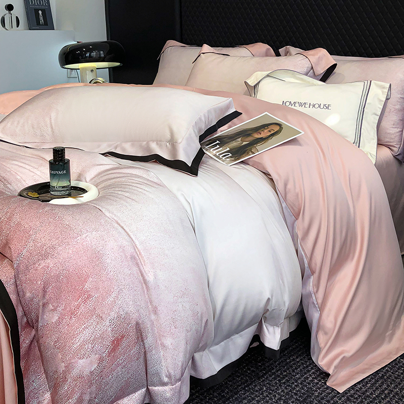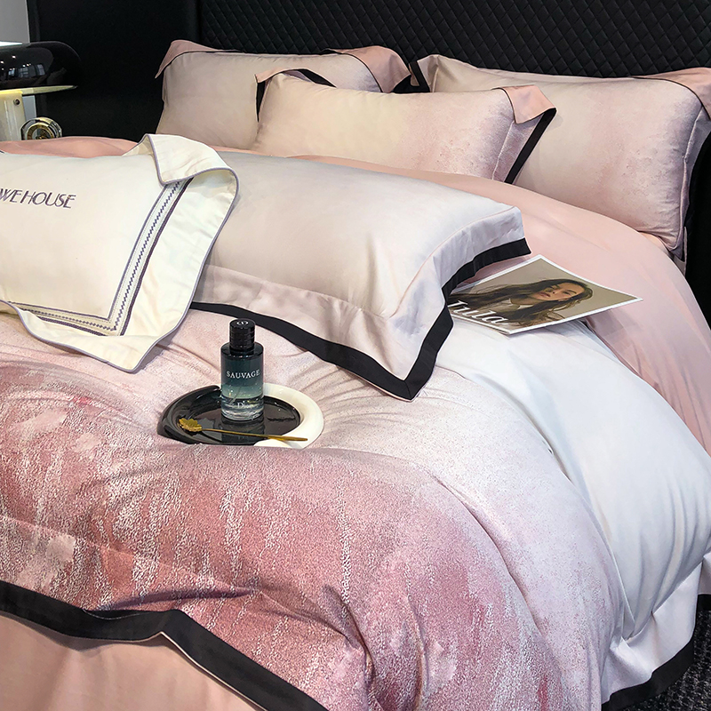 (总)若未家居 LOVEWE HOUSE 2026新款100S数码印花轻奢风四件套-波澜,波澜 爵士灰,波澜 公主粉,波澜 贝拉橘