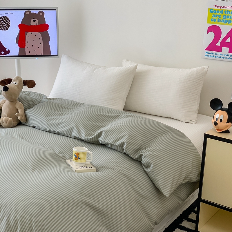 (总)窝米 2022夏季新品素色双拼水洗棉四件套,艾青双拼,冰莓粉双拼,绿云双拼,抹茶绿双拼,少女粉双拼,神仙紫双拼,雾霾蓝双拼,芝士双拼