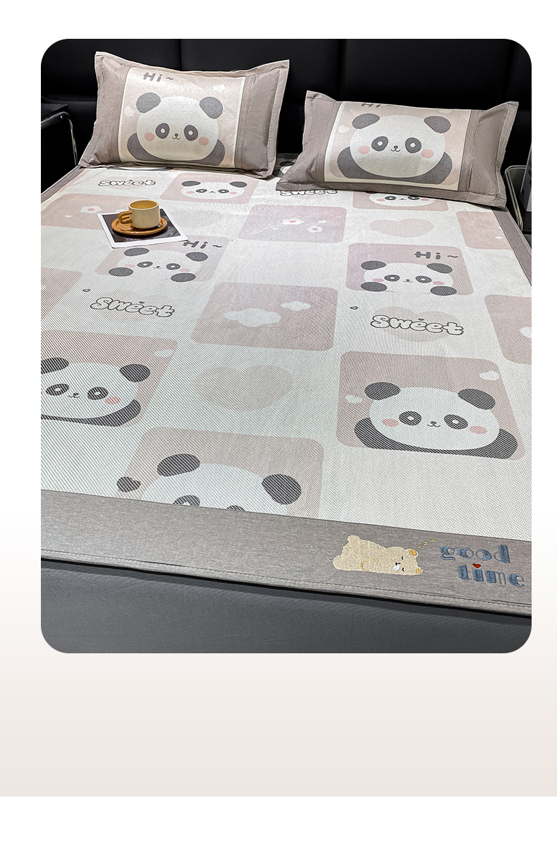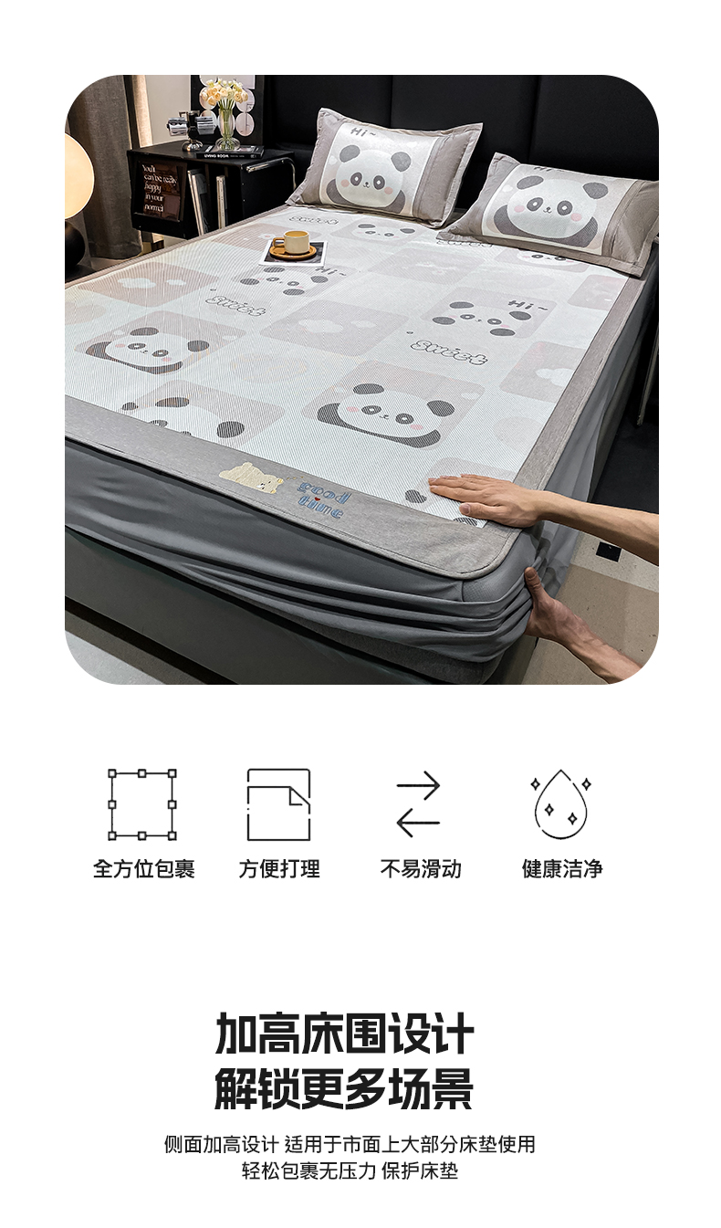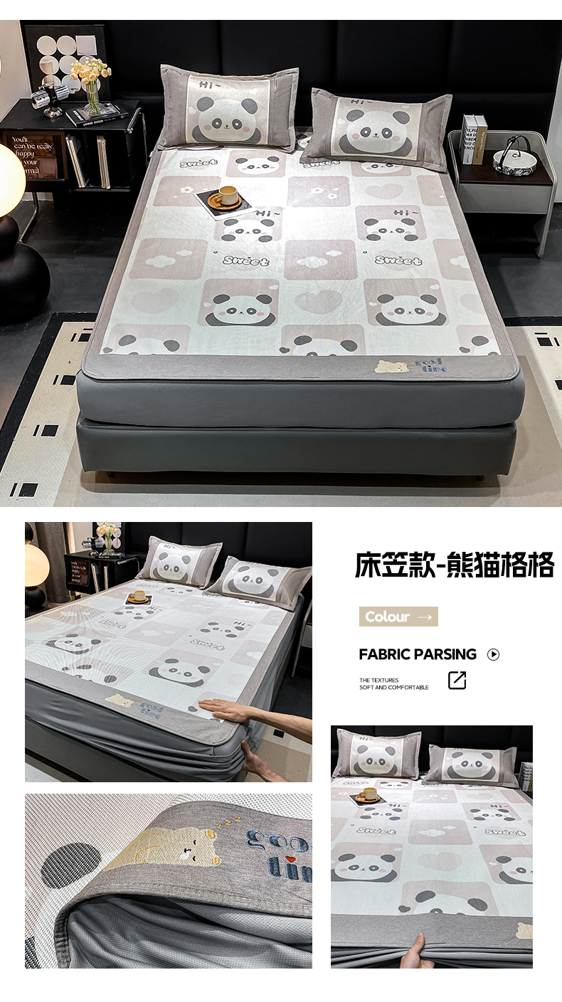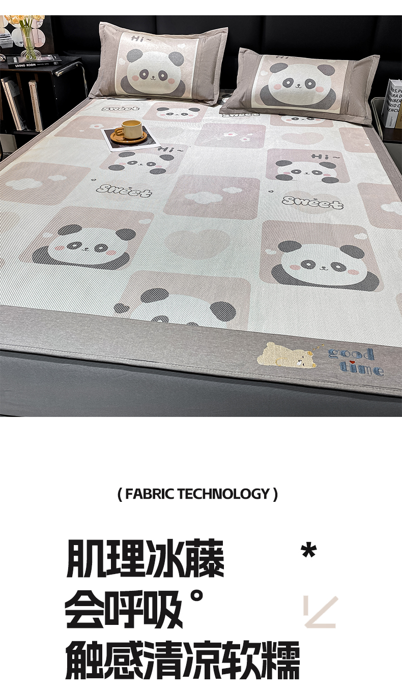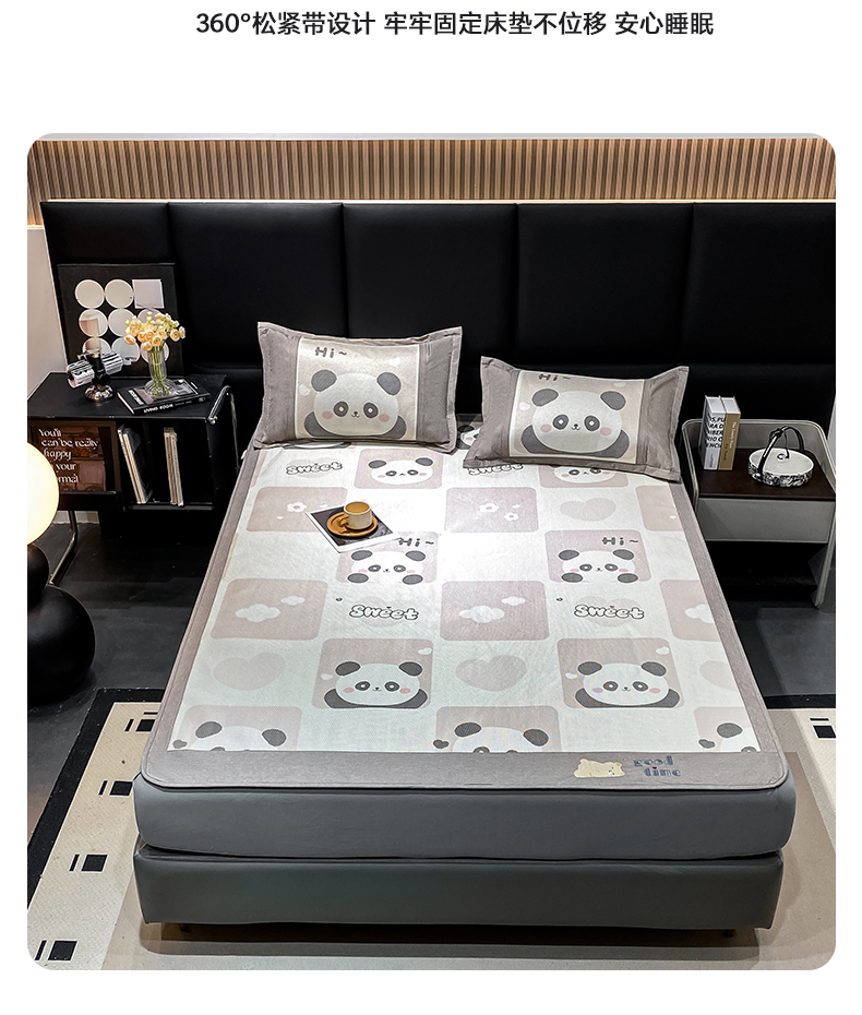 商品名称:宜家坊 2024新款A类抗菌数码印花冰藤凉席 床笠款-熊猫格格