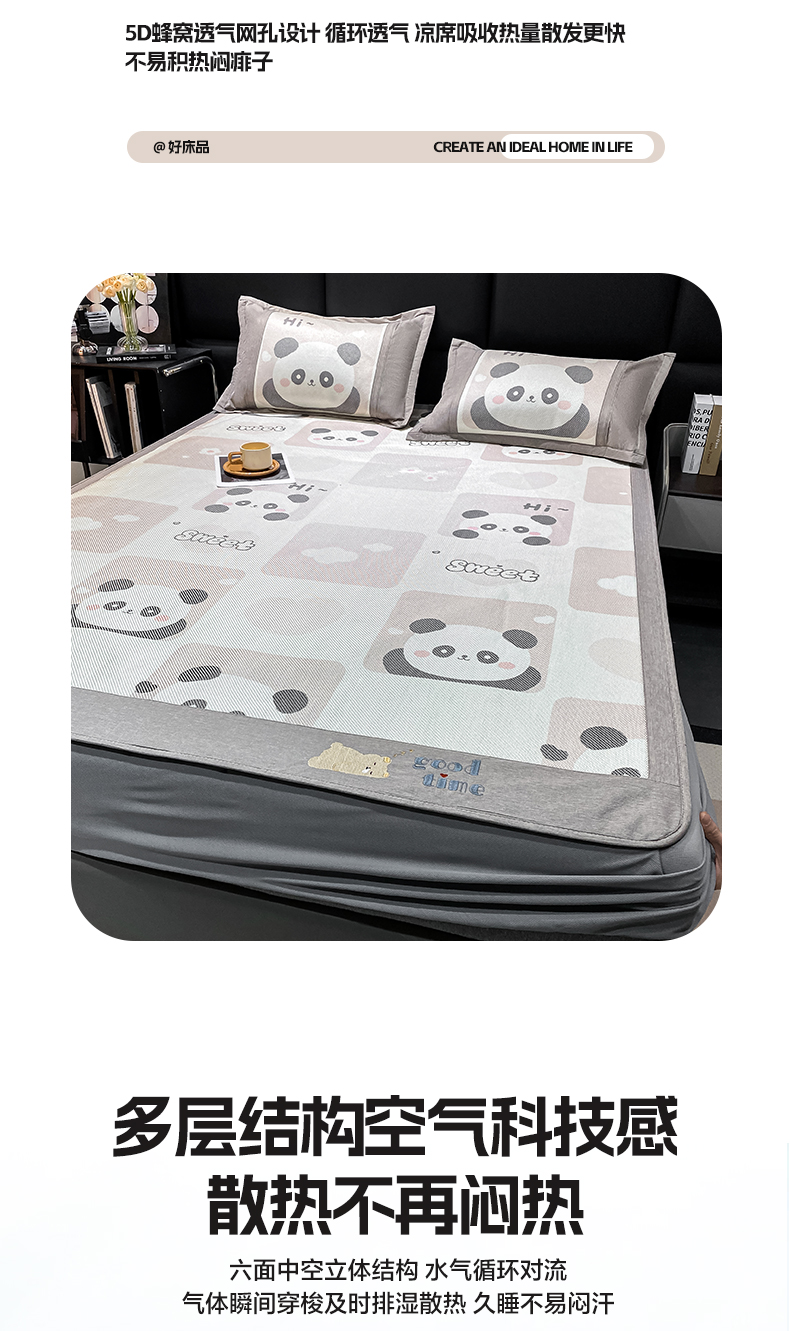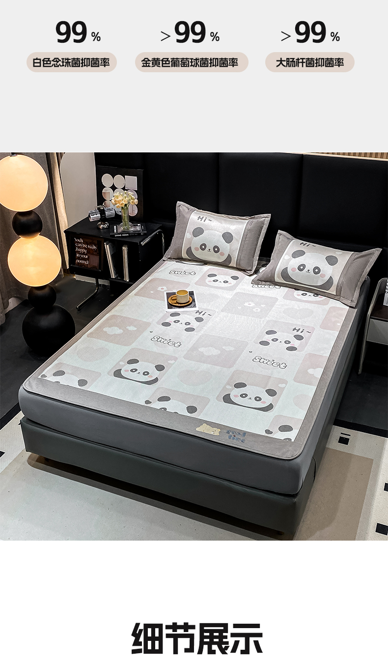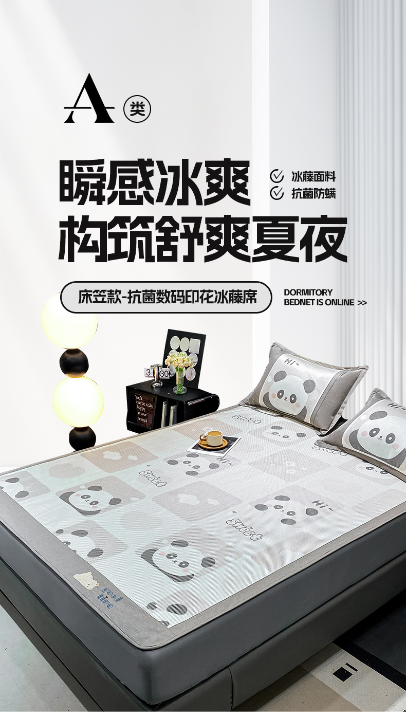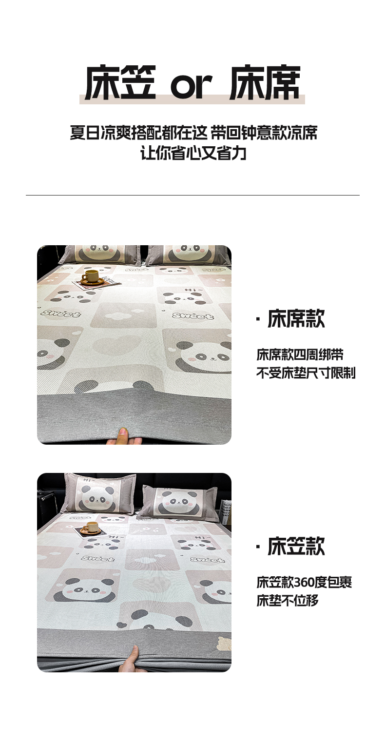 商品名称:宜家坊 2024新款A类抗菌数码印花冰藤凉席 床笠款-熊猫格格