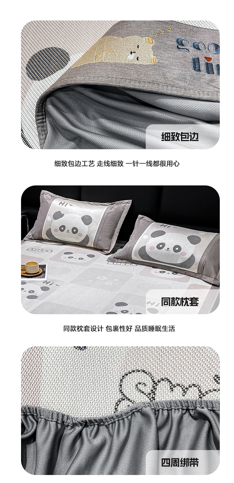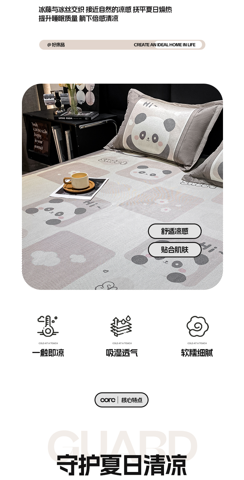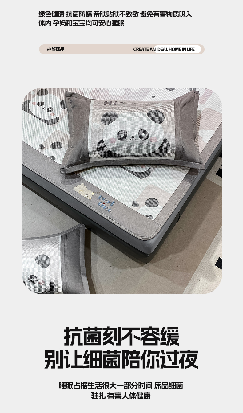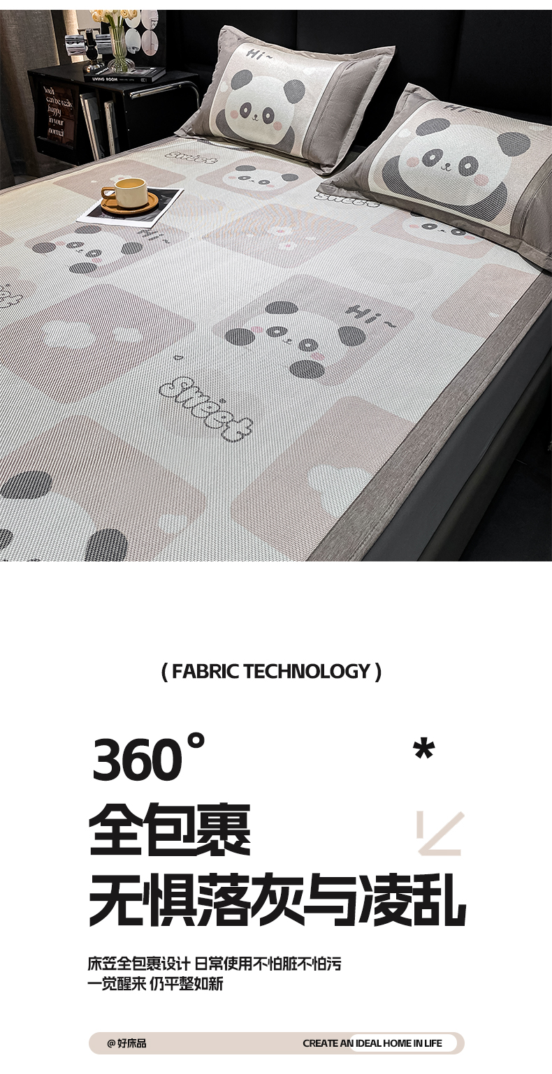 商品名称:宜家坊 2024新款A类抗菌数码印花冰藤凉席 床笠款-熊猫格格