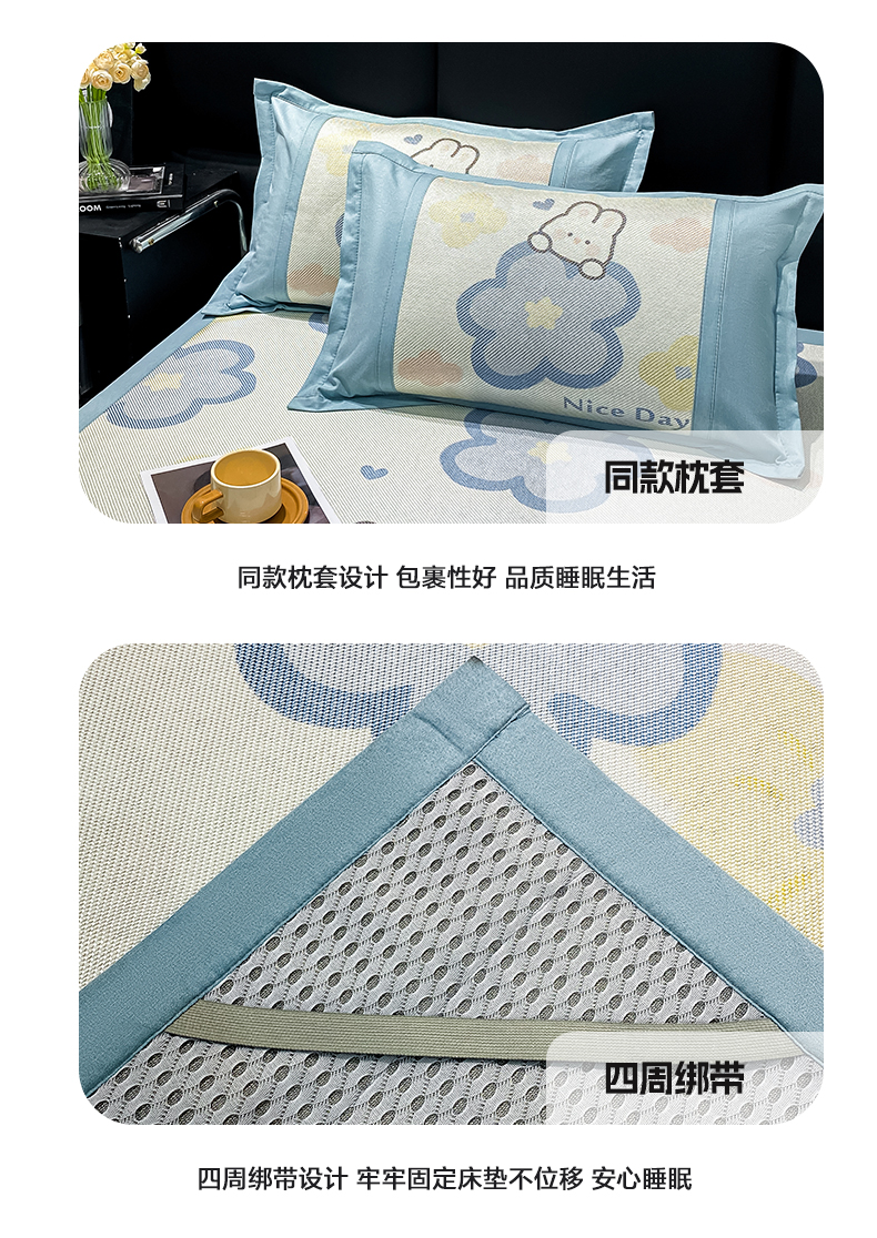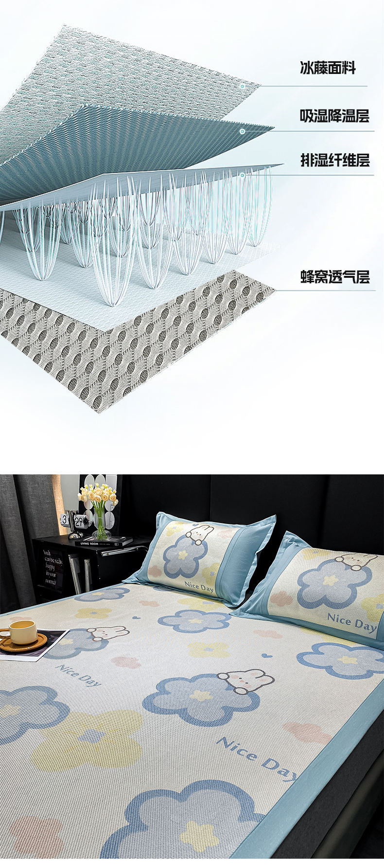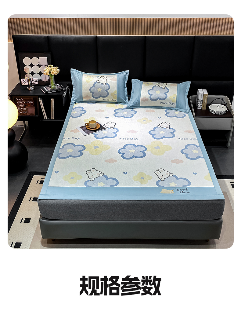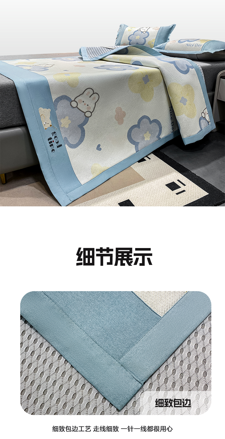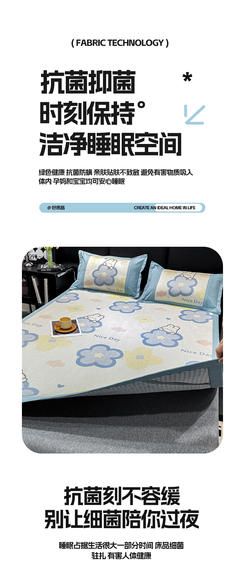宜家坊 2024新款A类抗菌数码印花冰藤凉席 床席款-蓝翎花