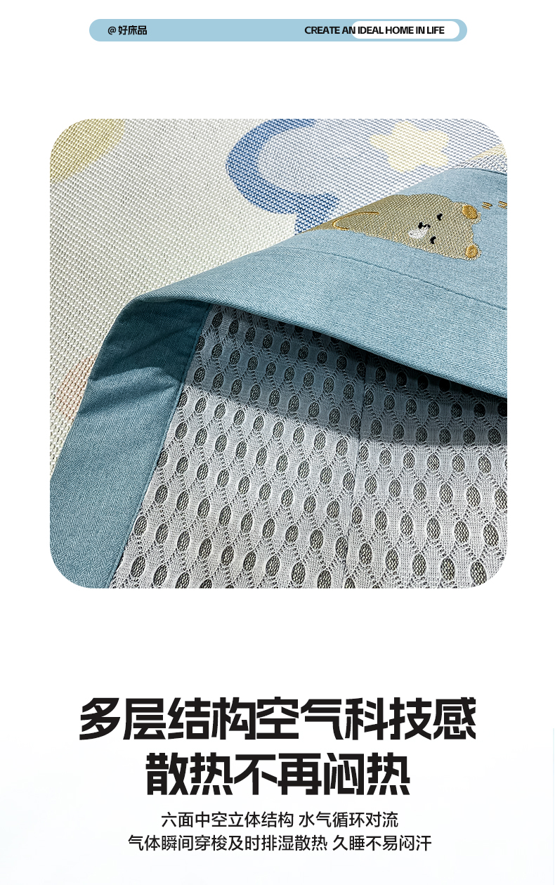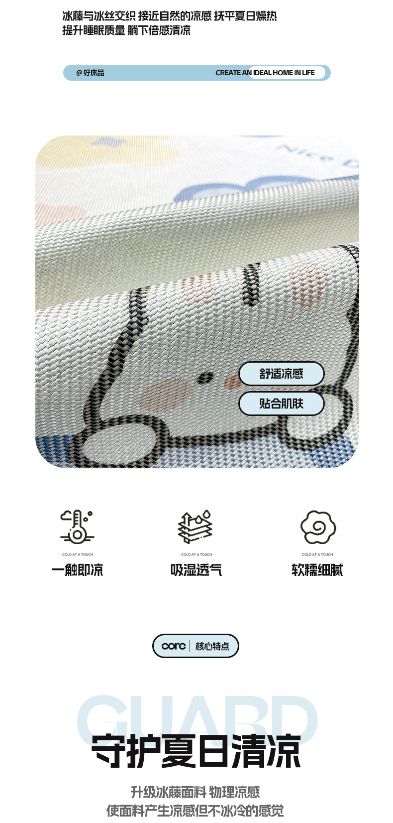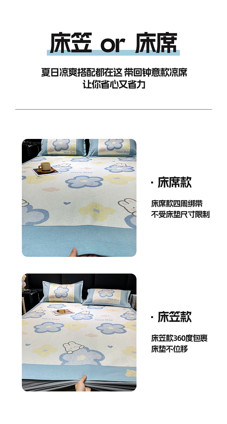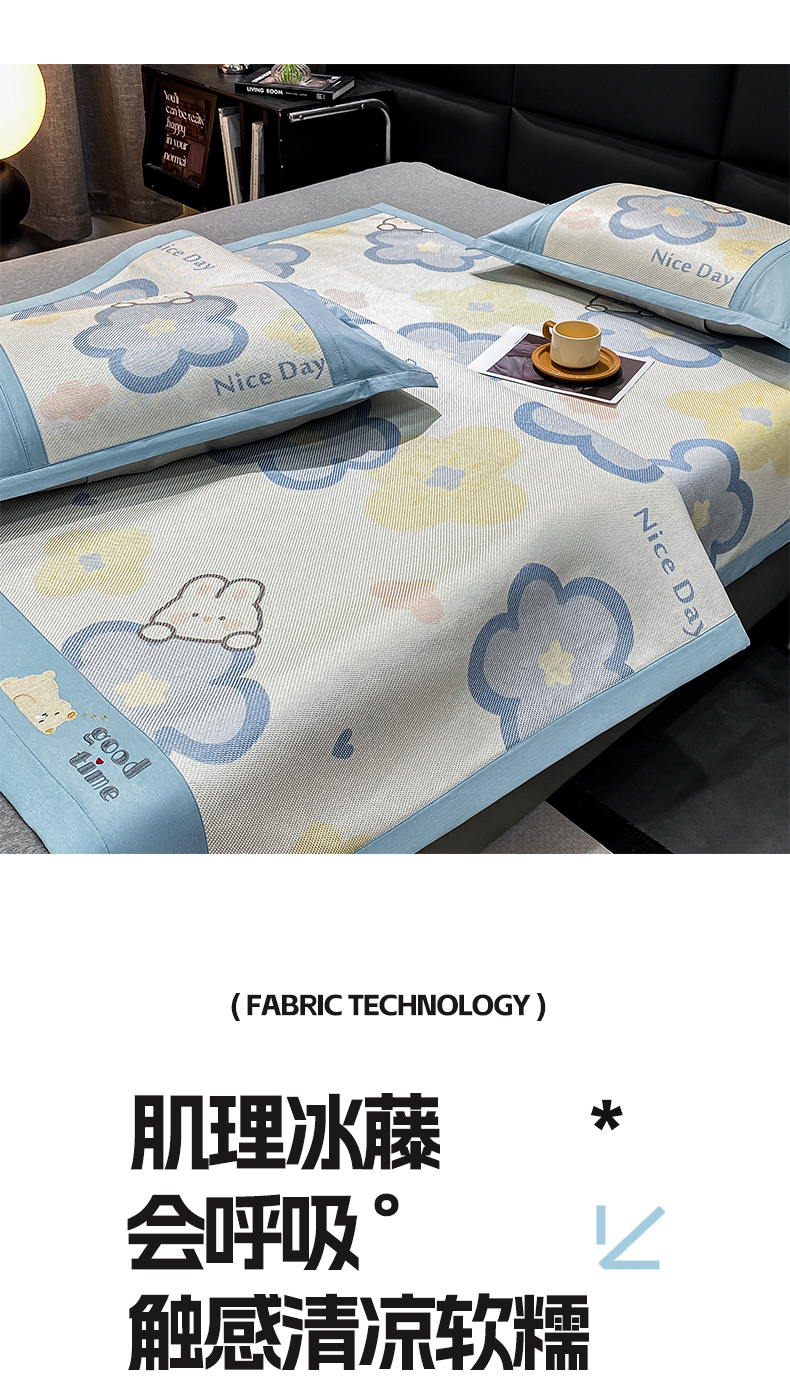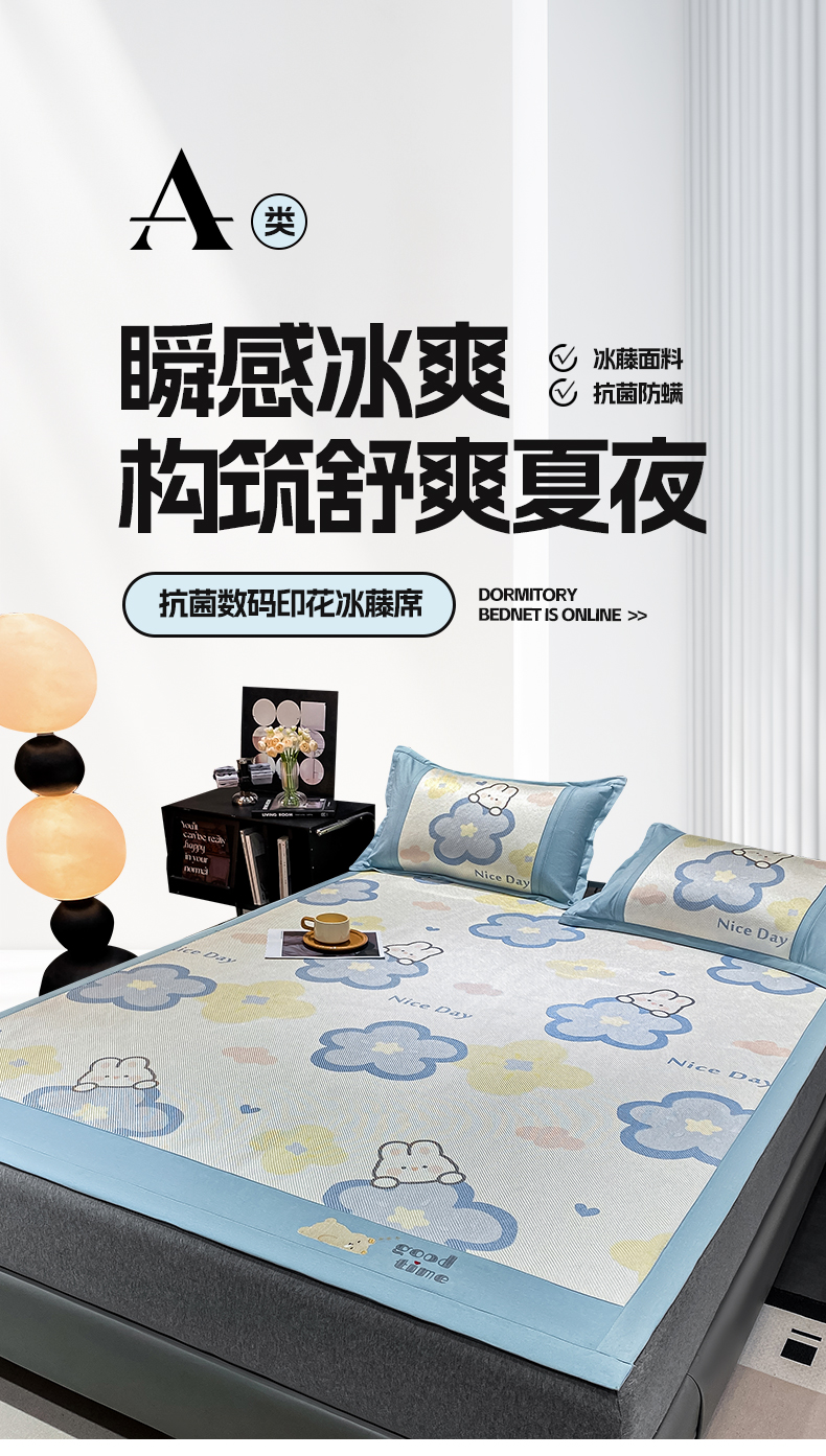 宜家坊 2024新款A类抗菌数码印花冰藤凉席 床席款-蓝翎花