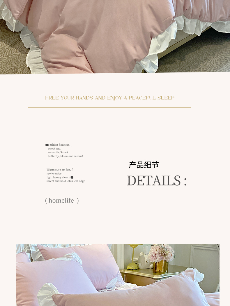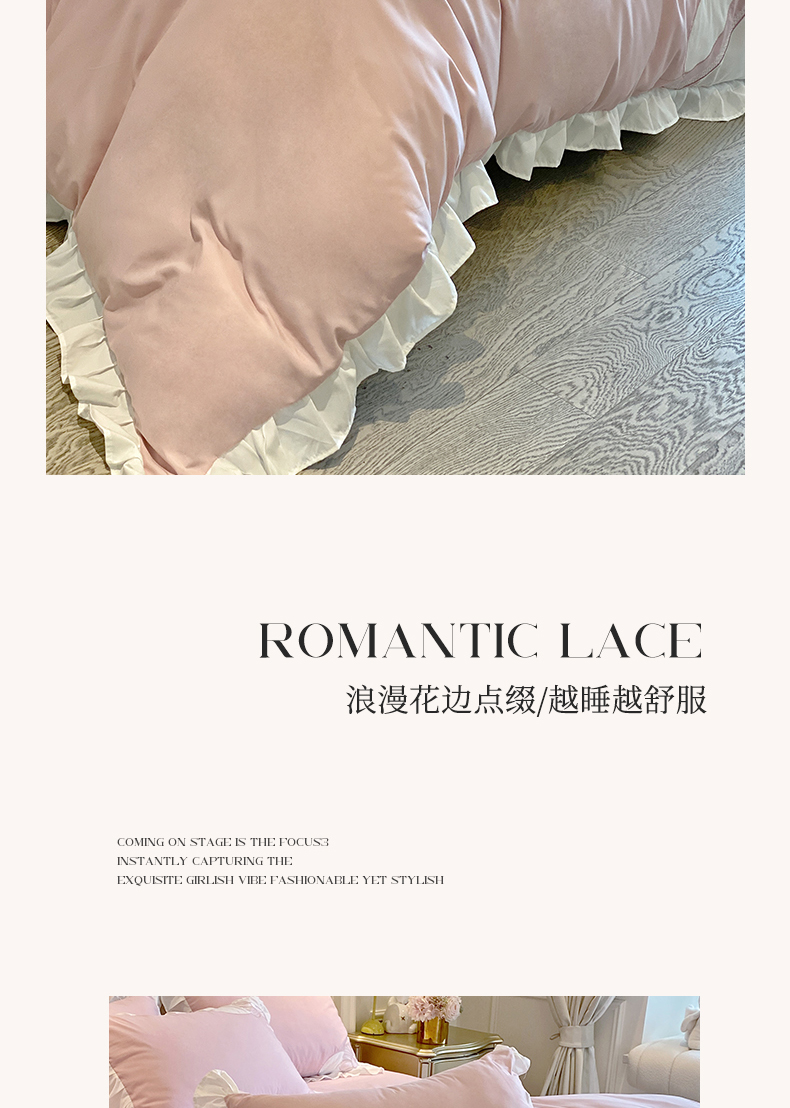 (总)苏源家居 2025新款韩式大花边ins风妮可公主风四件套,军绿色,白色,粉色,黑色,卡其色,蓝色