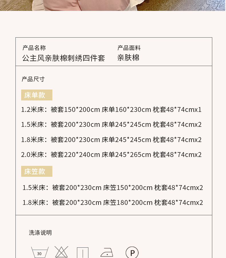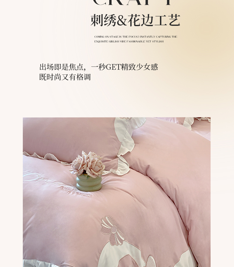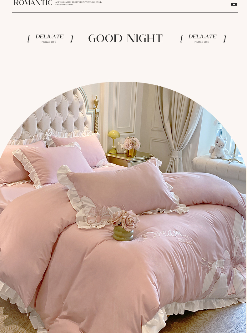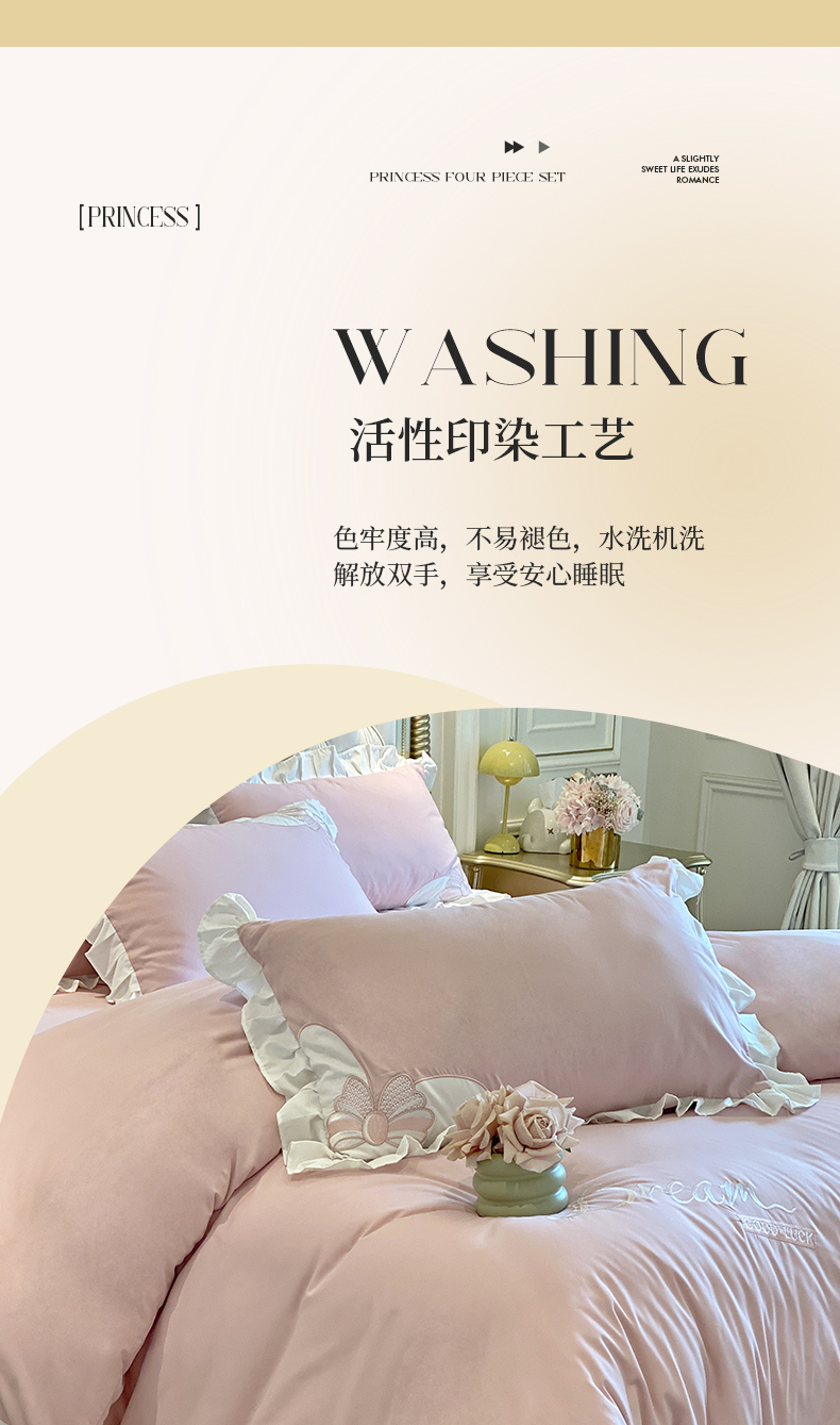 商品名称:(总)苏源家居 2024新款公主风亲肤棉刺绣四件套-甜心蝴蝶