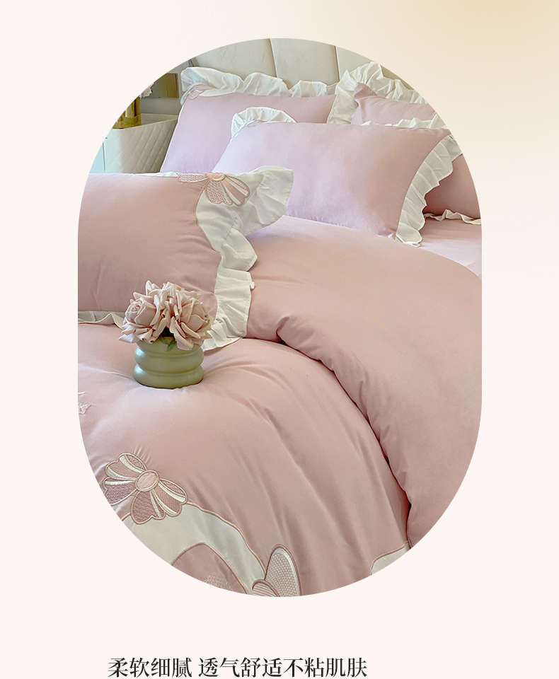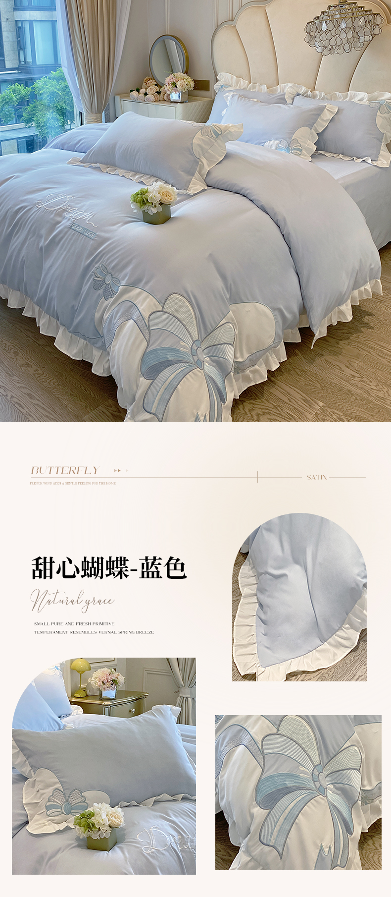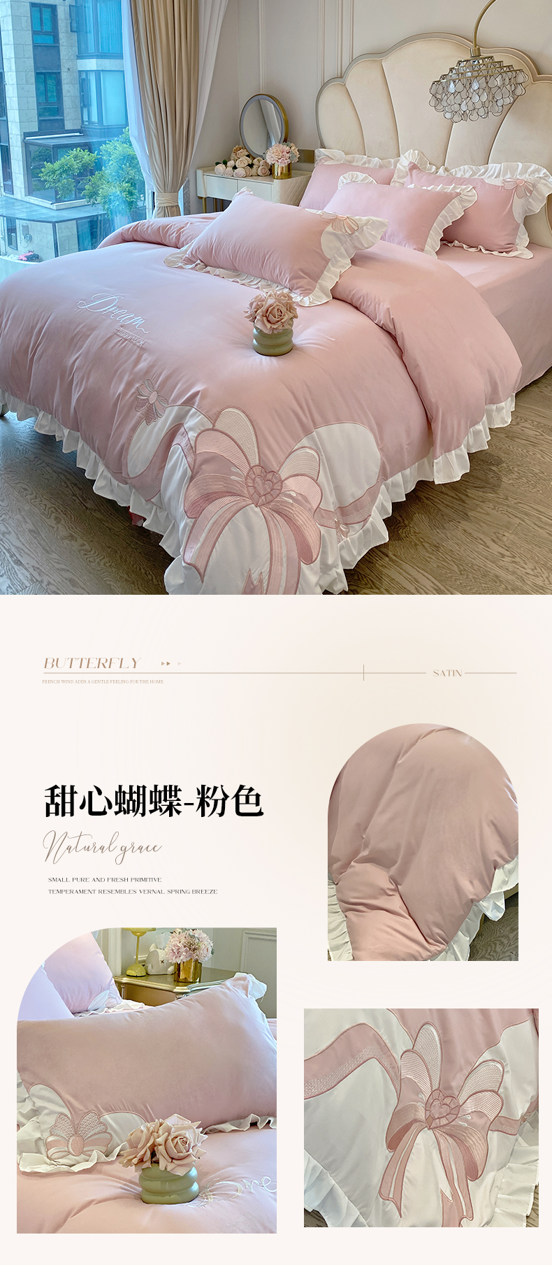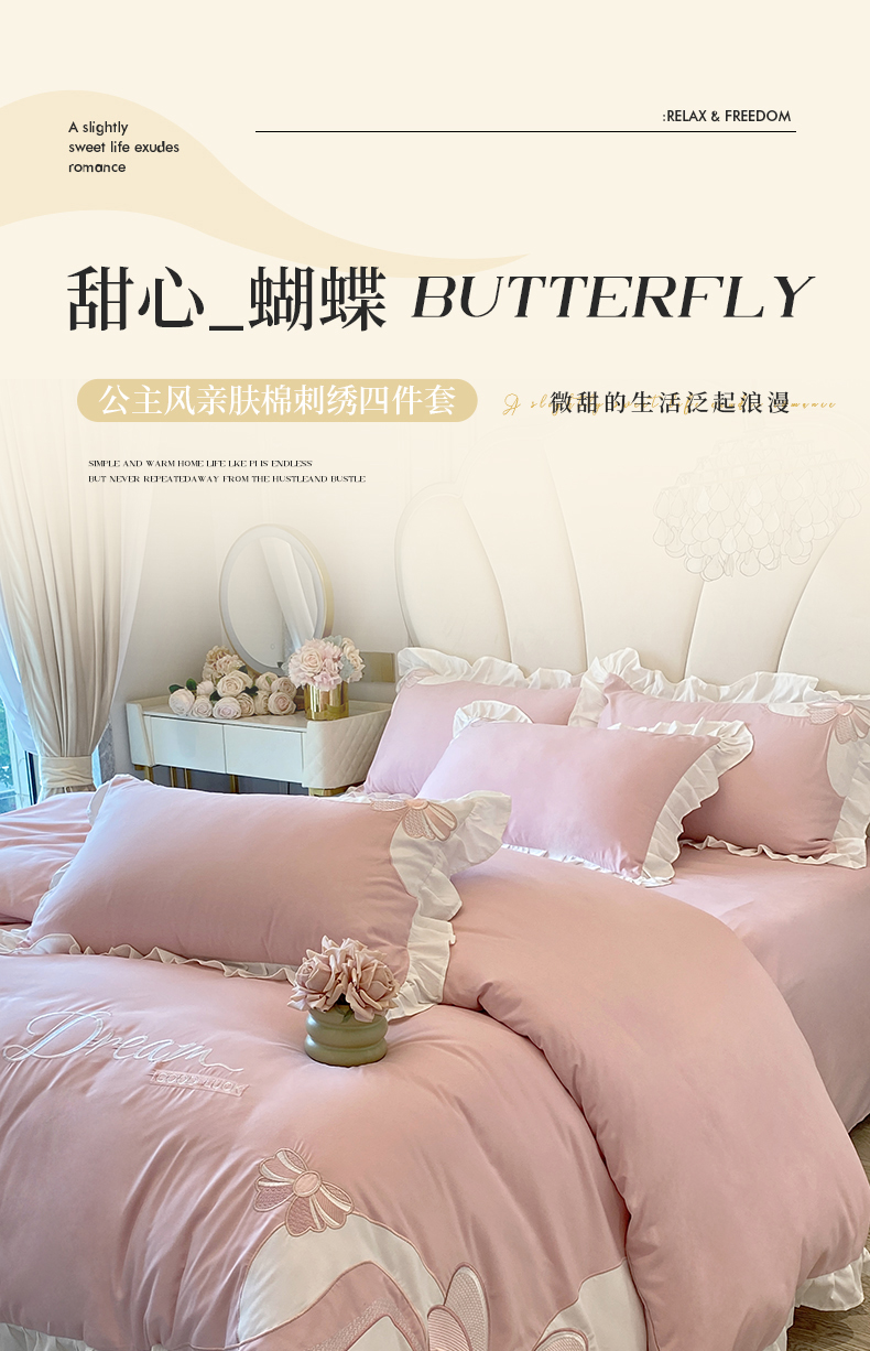 (总)苏源家居 2024新款公主风亲肤棉刺绣四件套-甜心蝴蝶