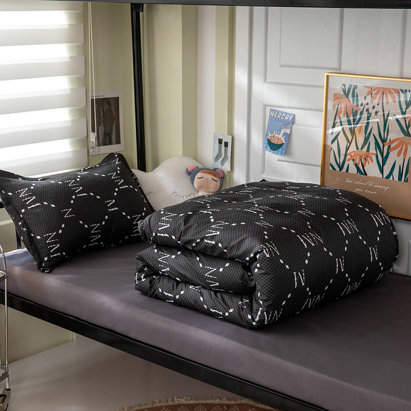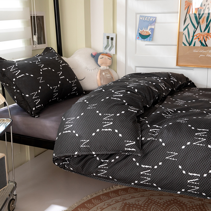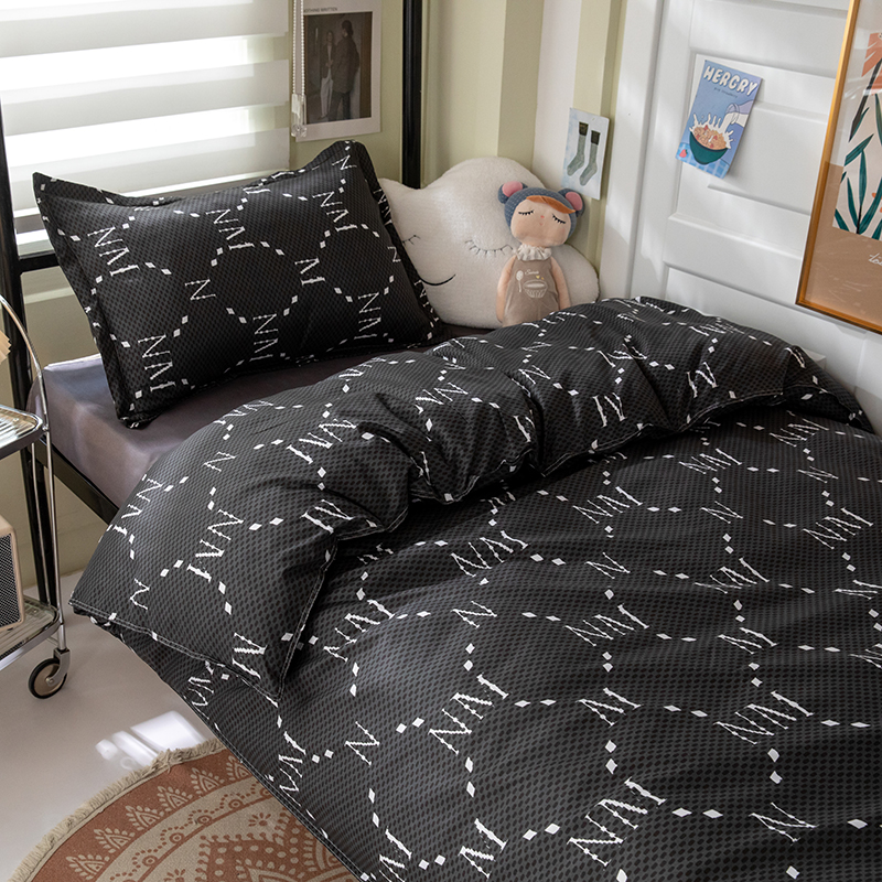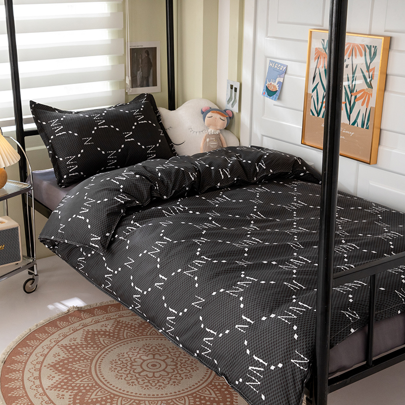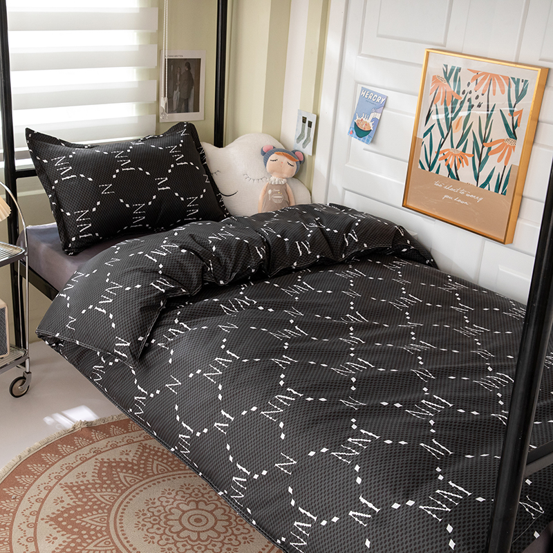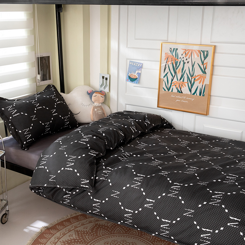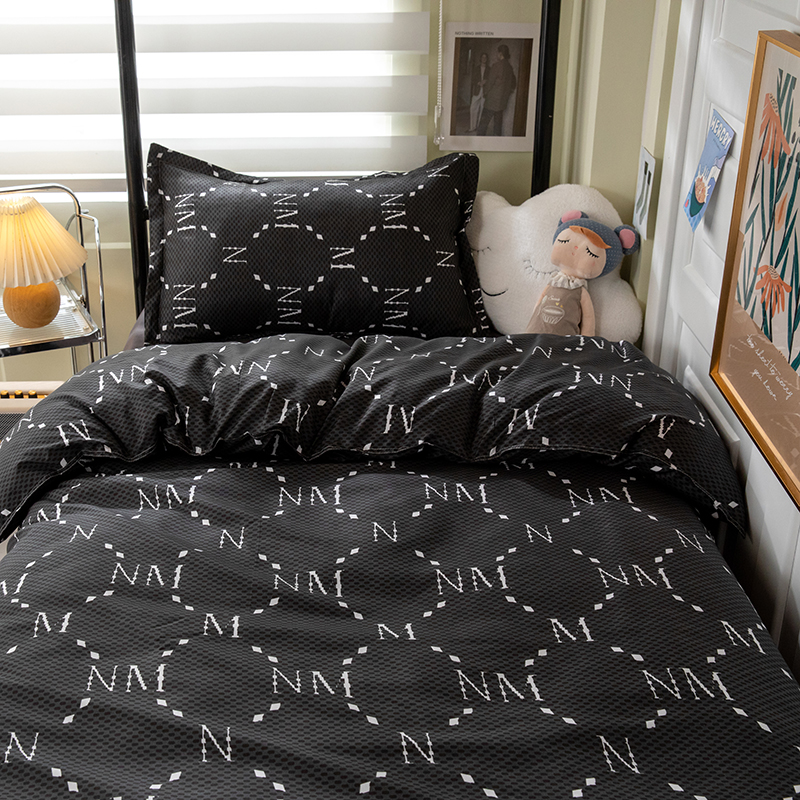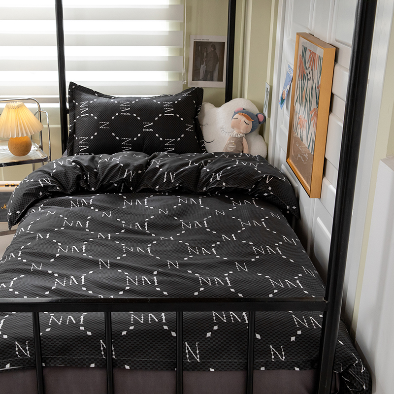 商品名称:港岛妹妹 2024新款芦荟棉印花四件套四件套学生床宿舍图 摩卡黑