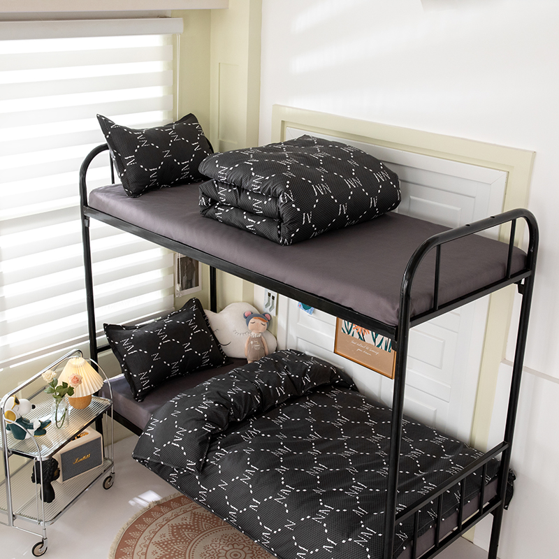 港岛妹妹 2024新款芦荟棉印花四件套四件套学生床宿舍图 摩卡黑