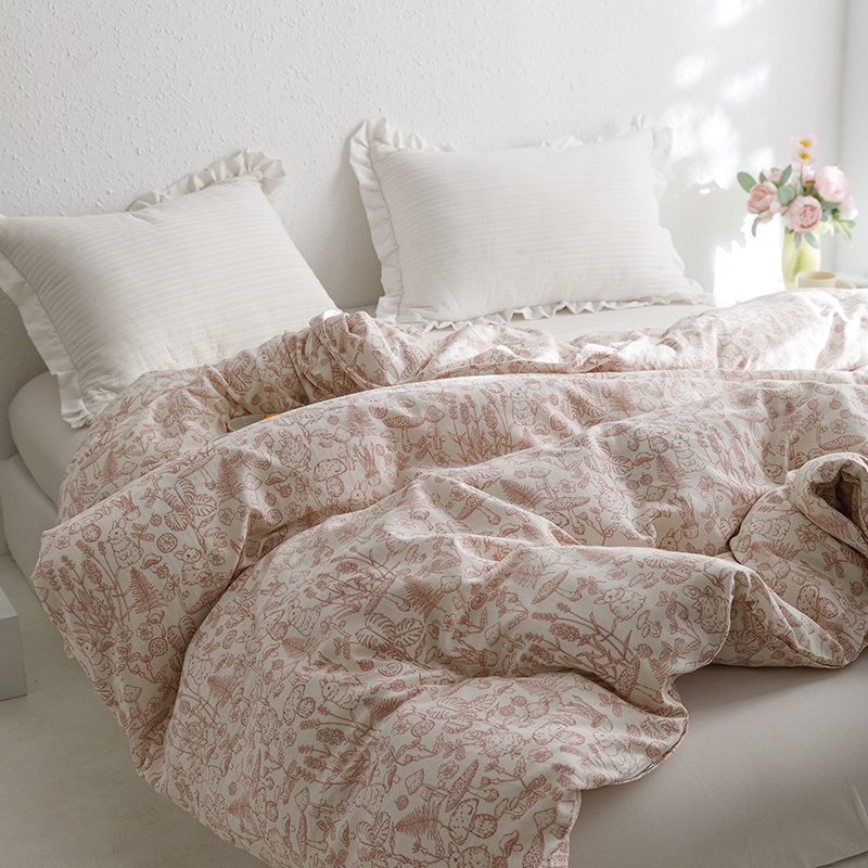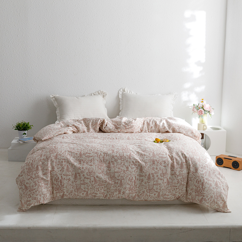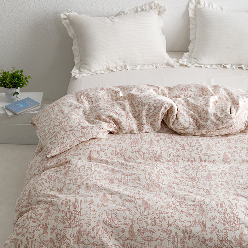 商品名称:2024新款40s全棉透气亲肤双层纱四件套单品系列-单被套 丛林蘑菇