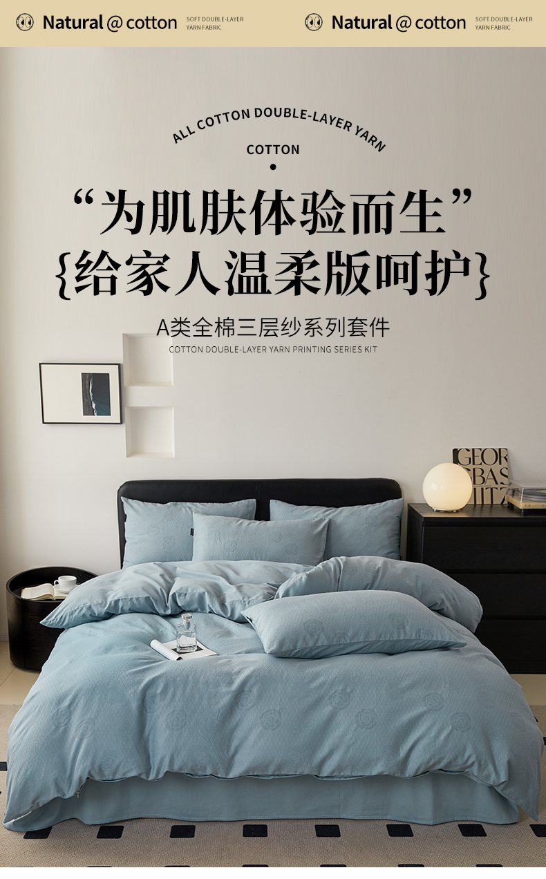 (总)优彩 2025新款A类全棉提花三层纱四件套,巴洛克初暖灰,巴洛克豆沙,巴洛克奶昔白,巴洛克雾兰