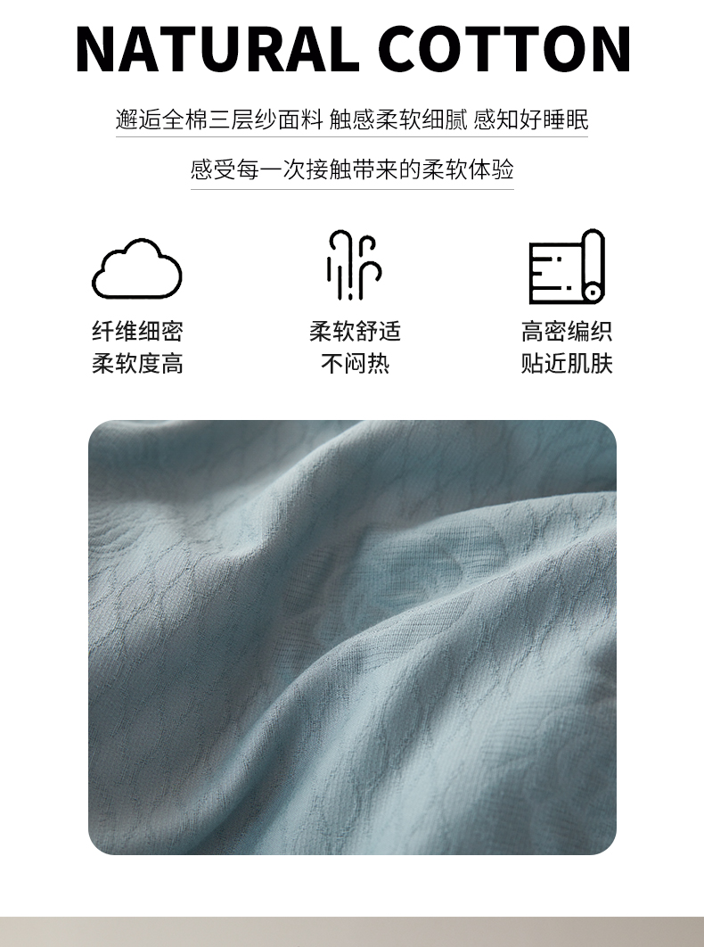 商品名称:优彩 2025新款A类全棉提花三层纱四件套 巴洛克雾兰