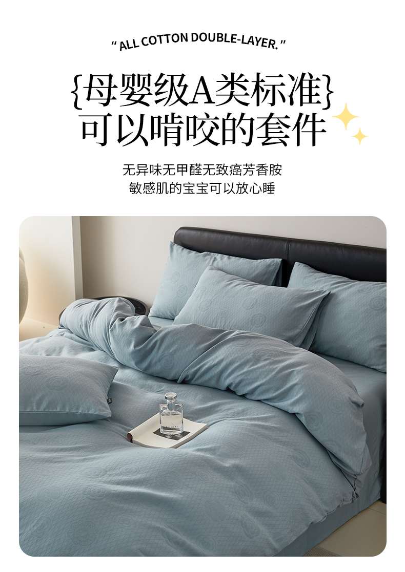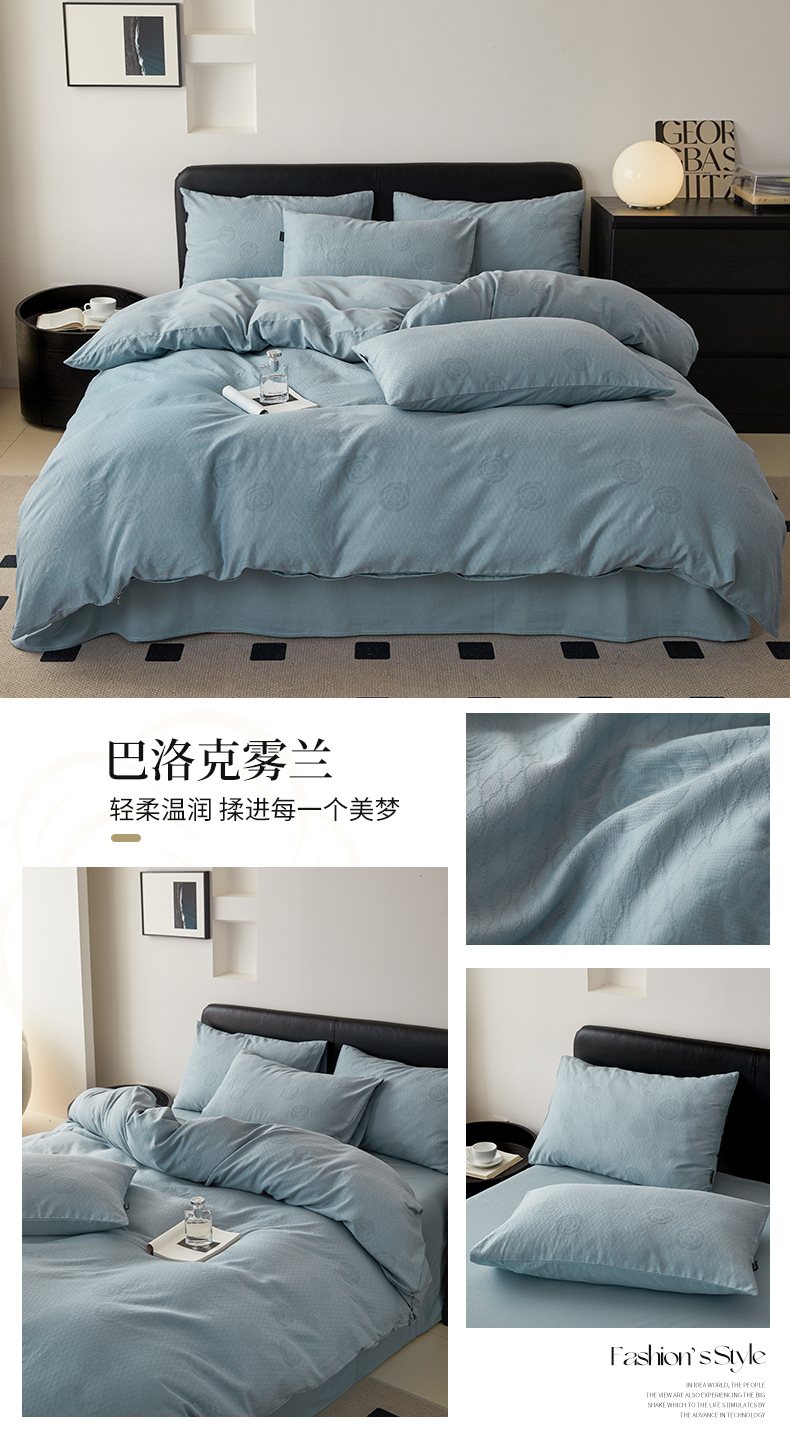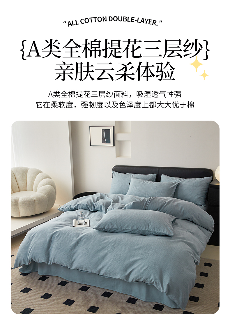 优彩 2025新款A类全棉提花三层纱四件套 巴洛克雾兰