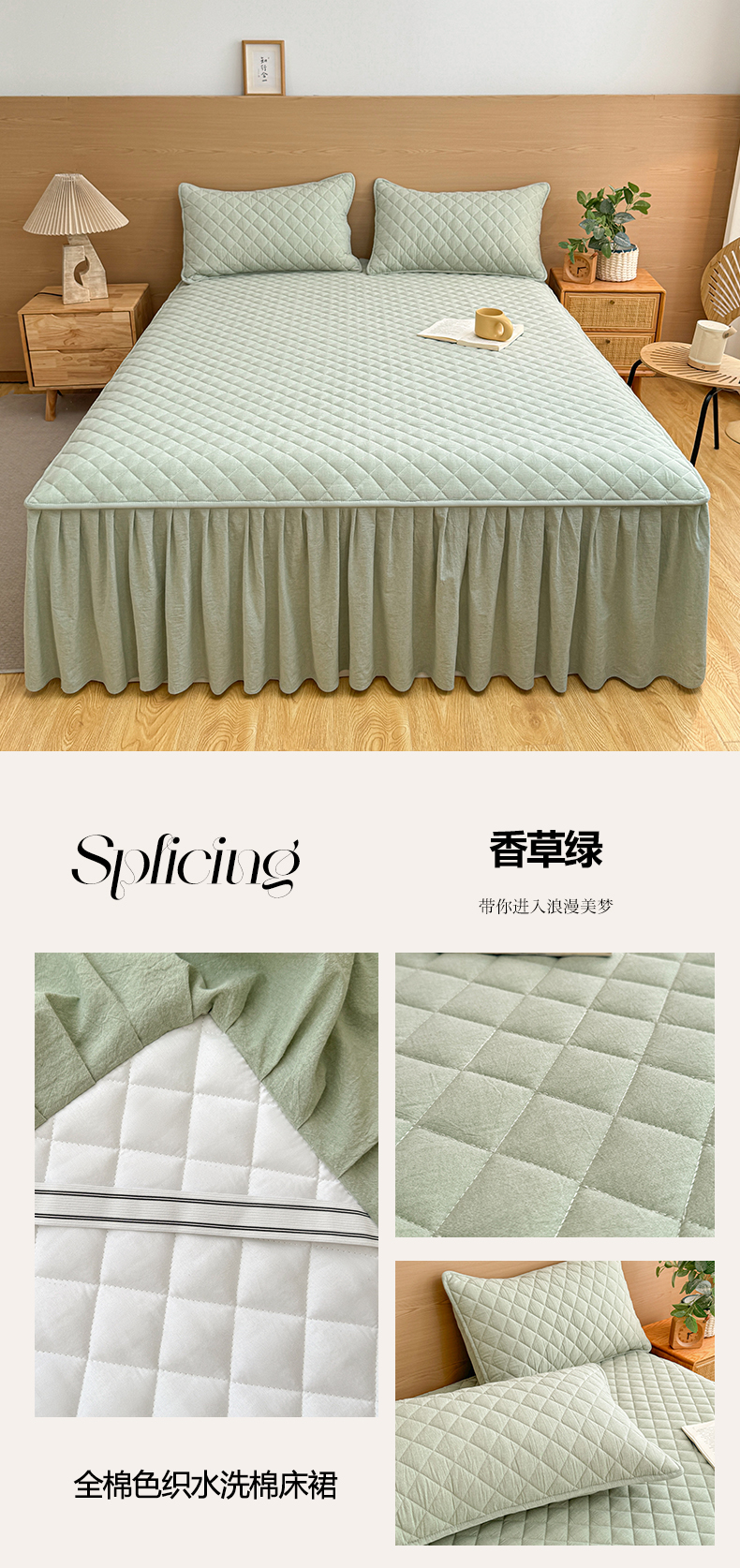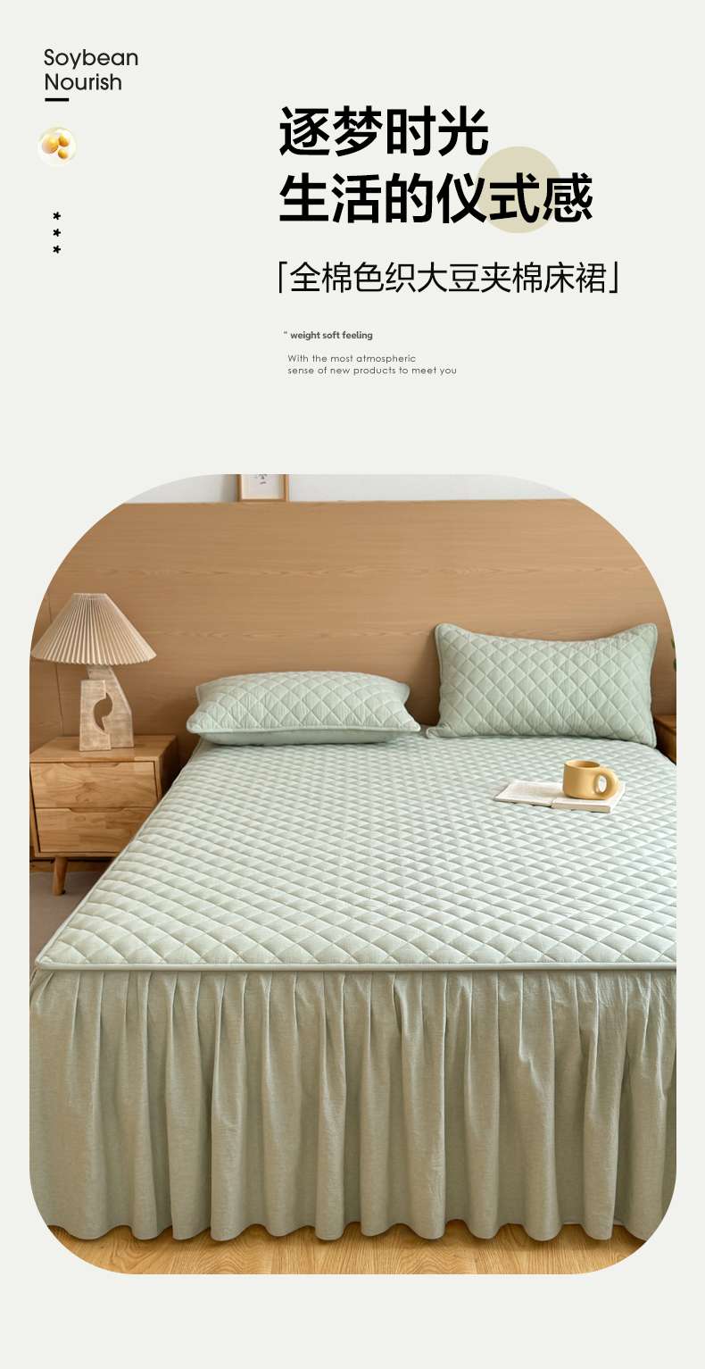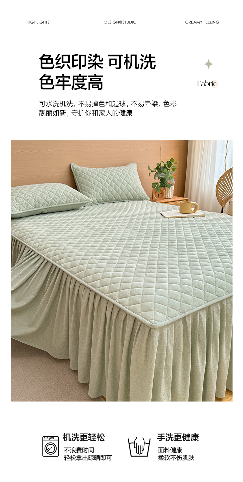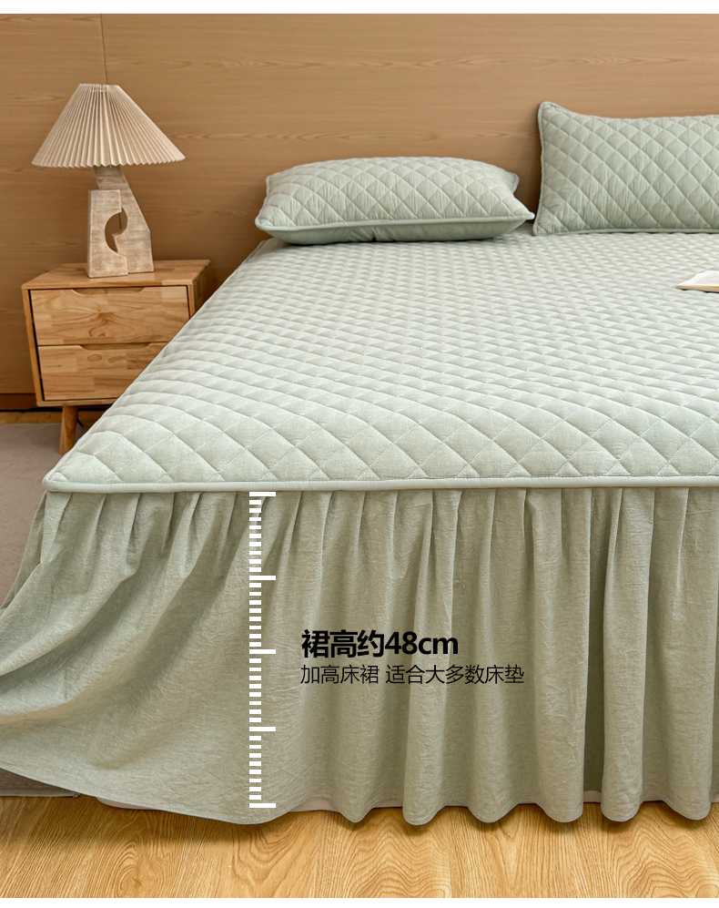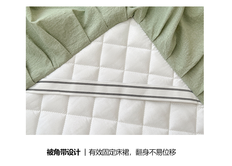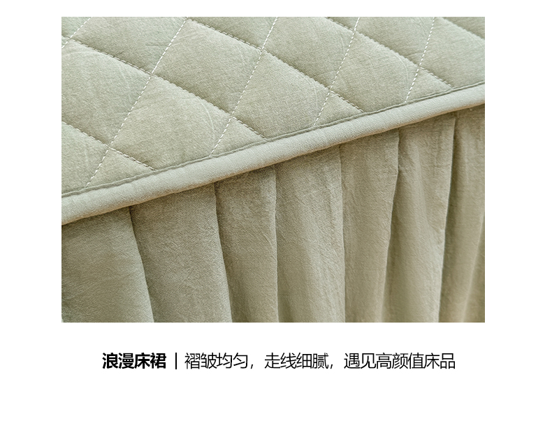 商品名称:糯米猪家纺 2024新款全棉色织水洗棉夹棉床裙 香草绿