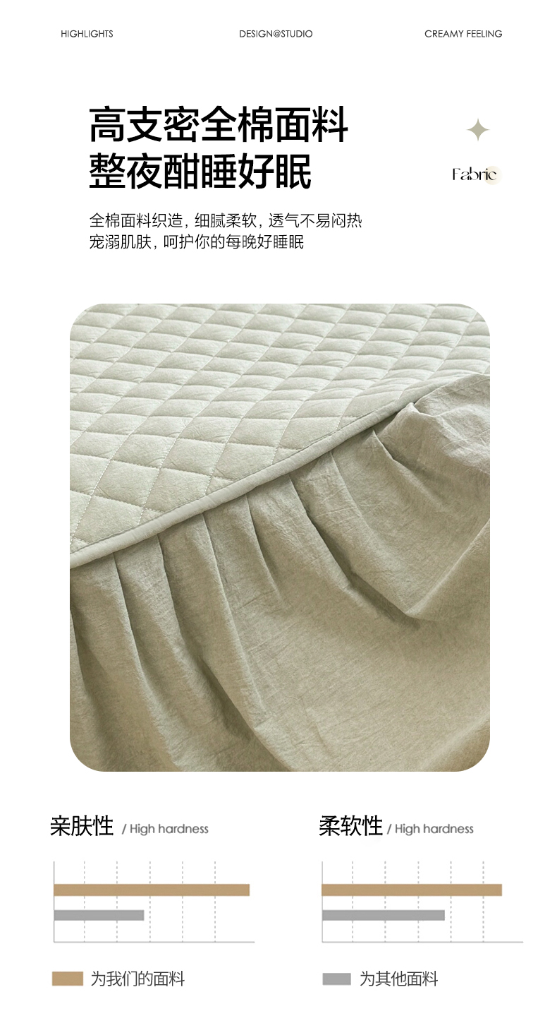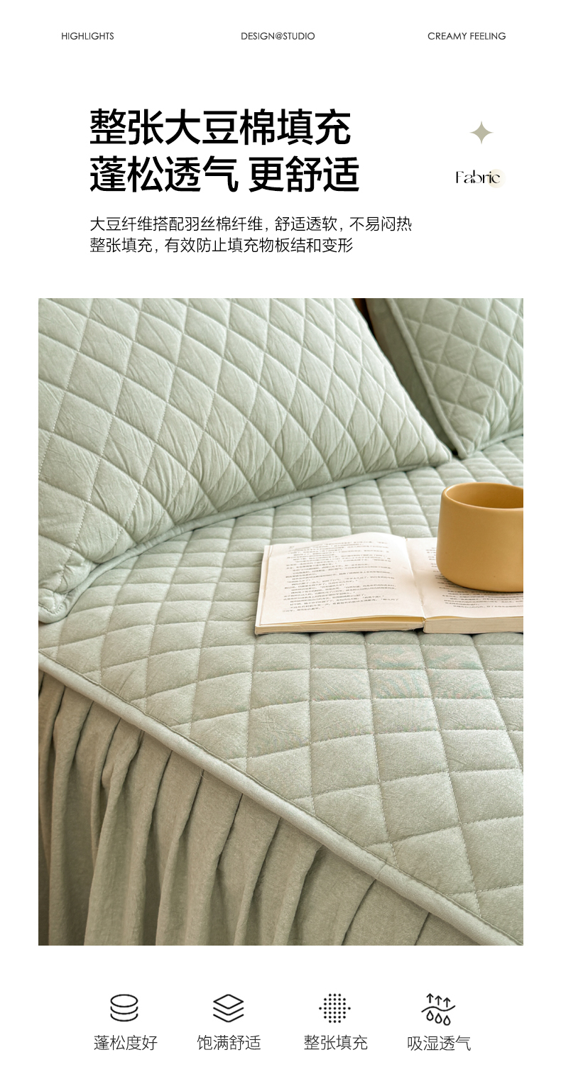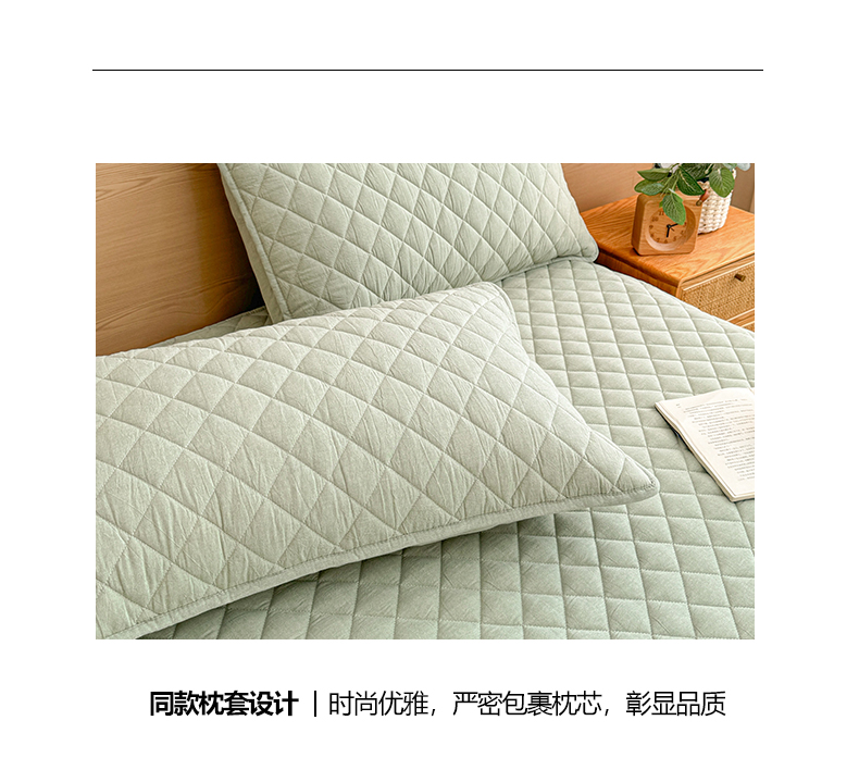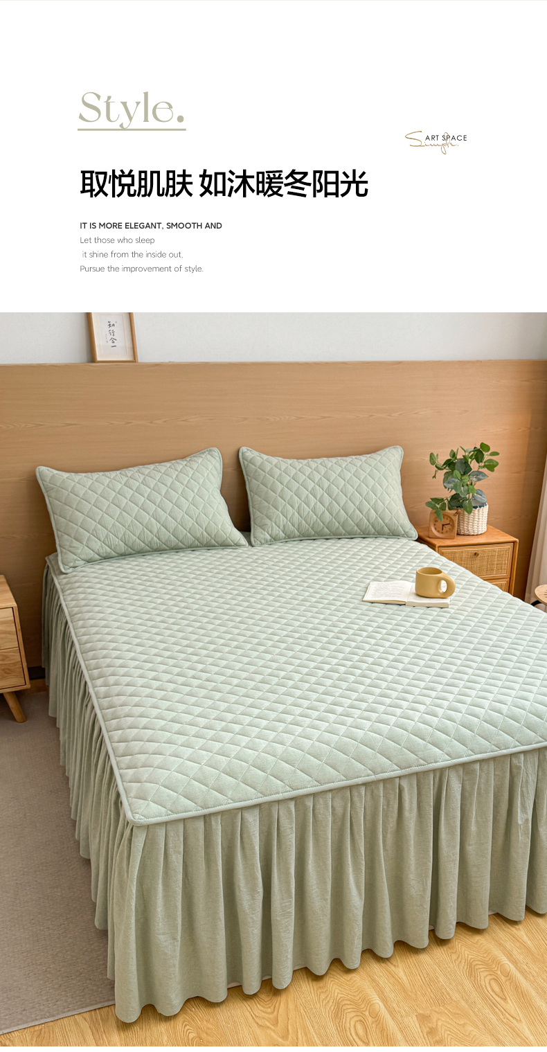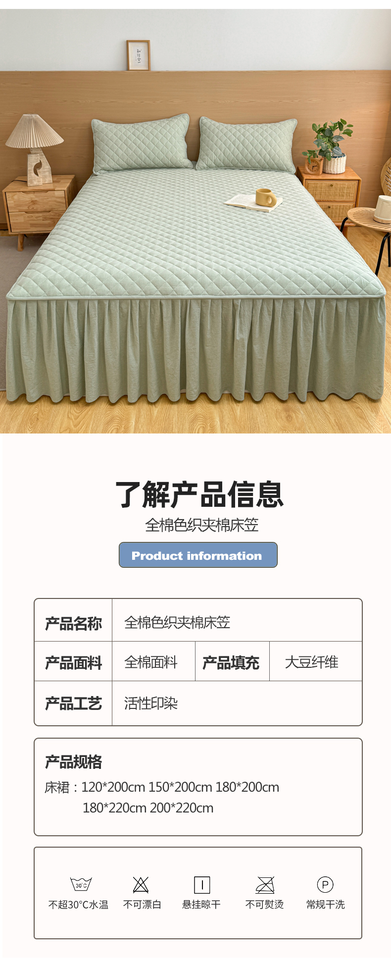商品名称:糯米猪家纺 2024新款全棉色织水洗棉夹棉床裙 香草绿