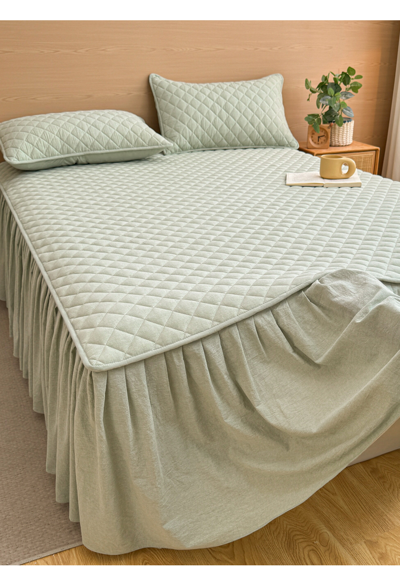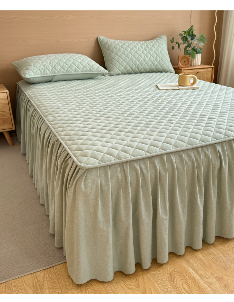 糯米猪家纺 2024新款全棉色织水洗棉夹棉床裙 香草绿