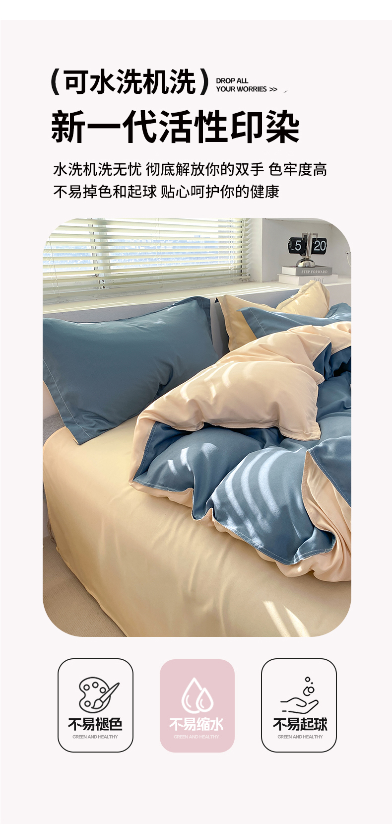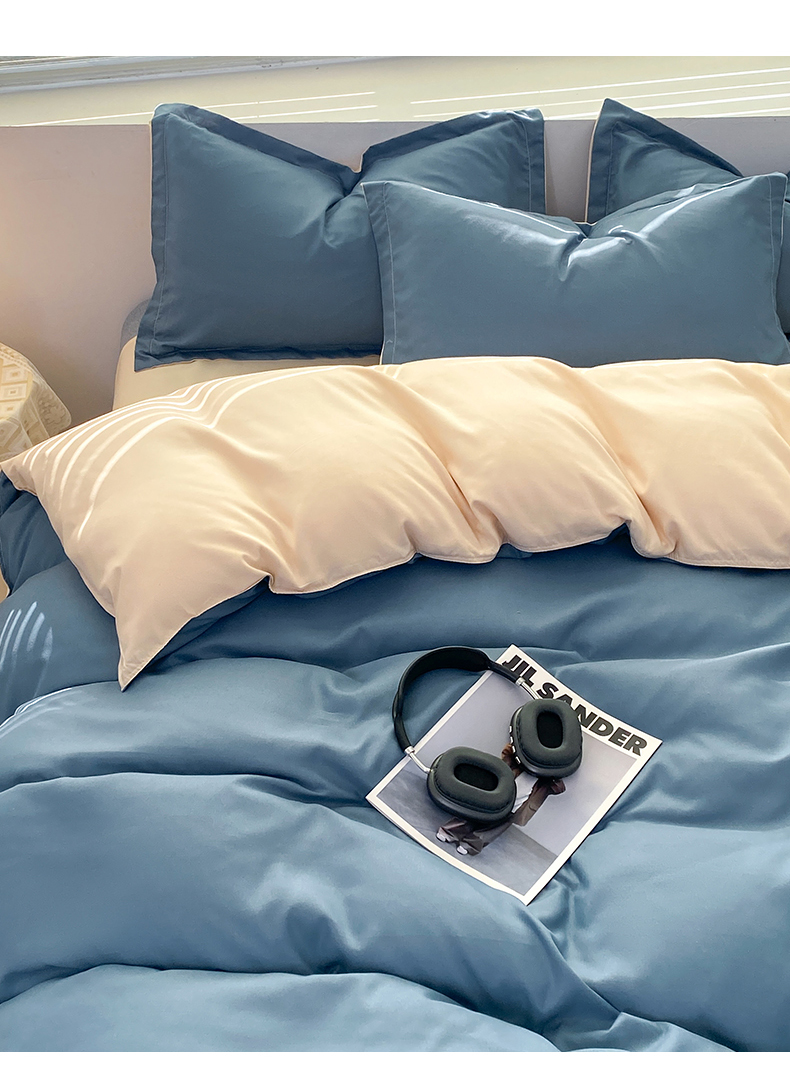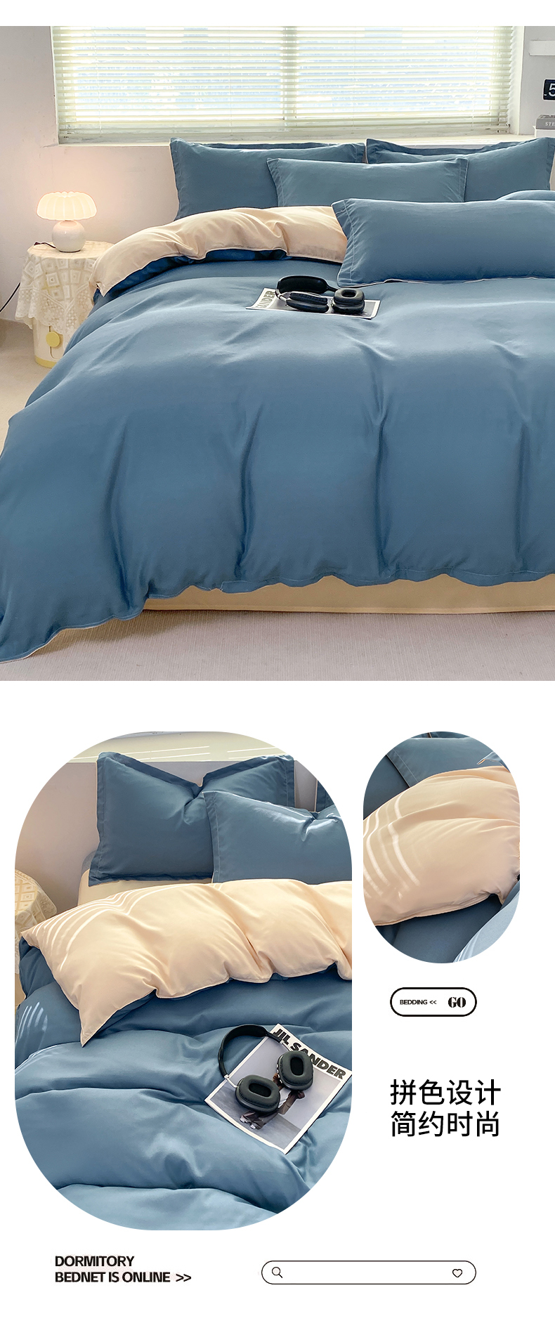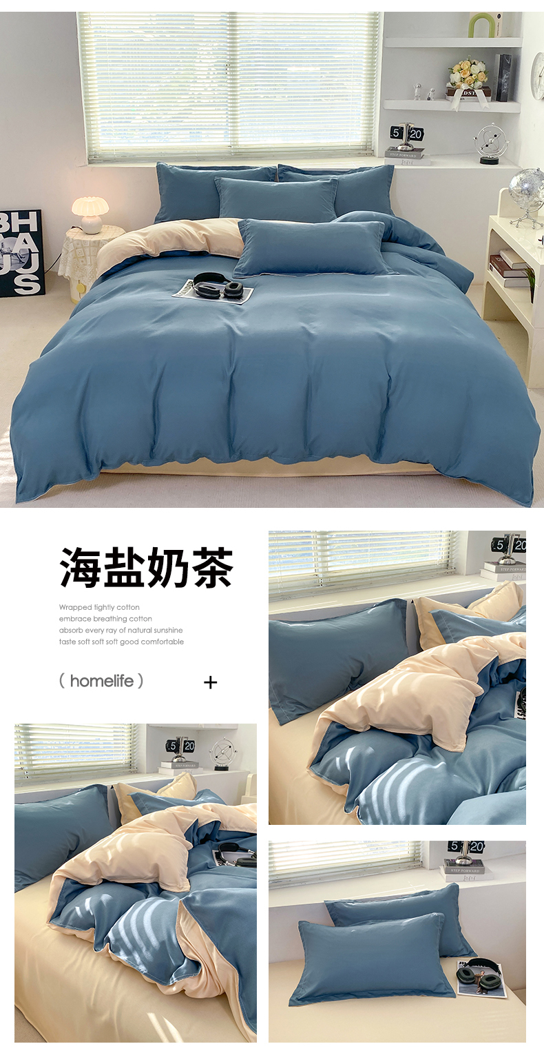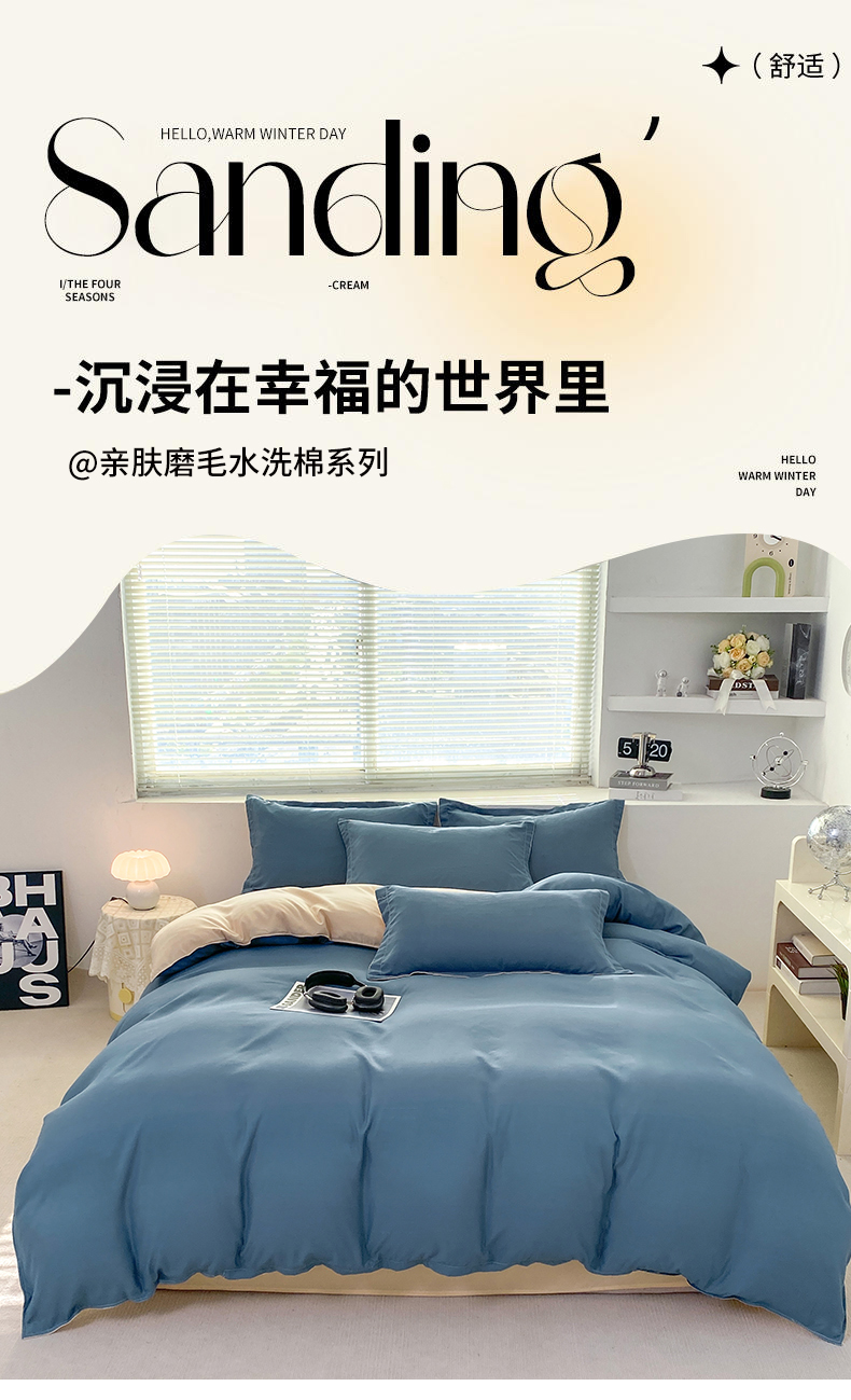 商品名称:米瑞娜 2024新款纯色双拼亲肤磨毛水洗棉四件套 海蓝奶茶