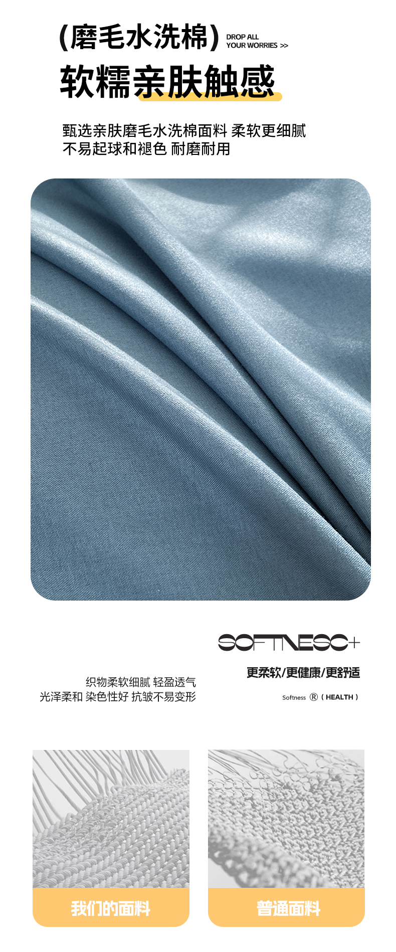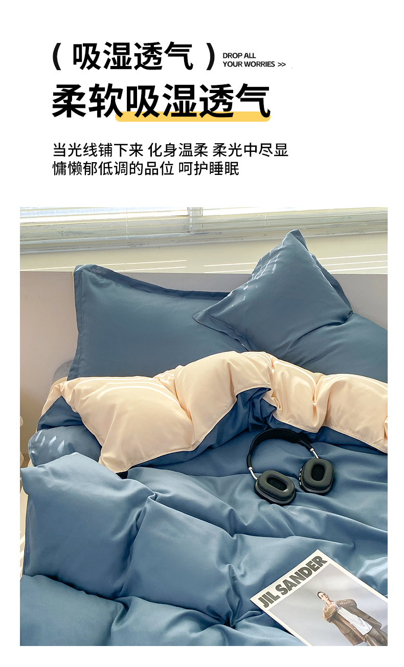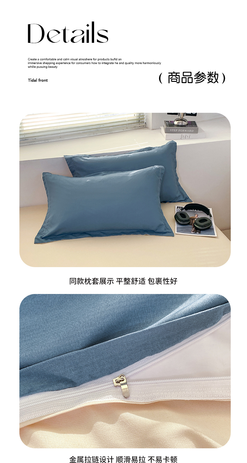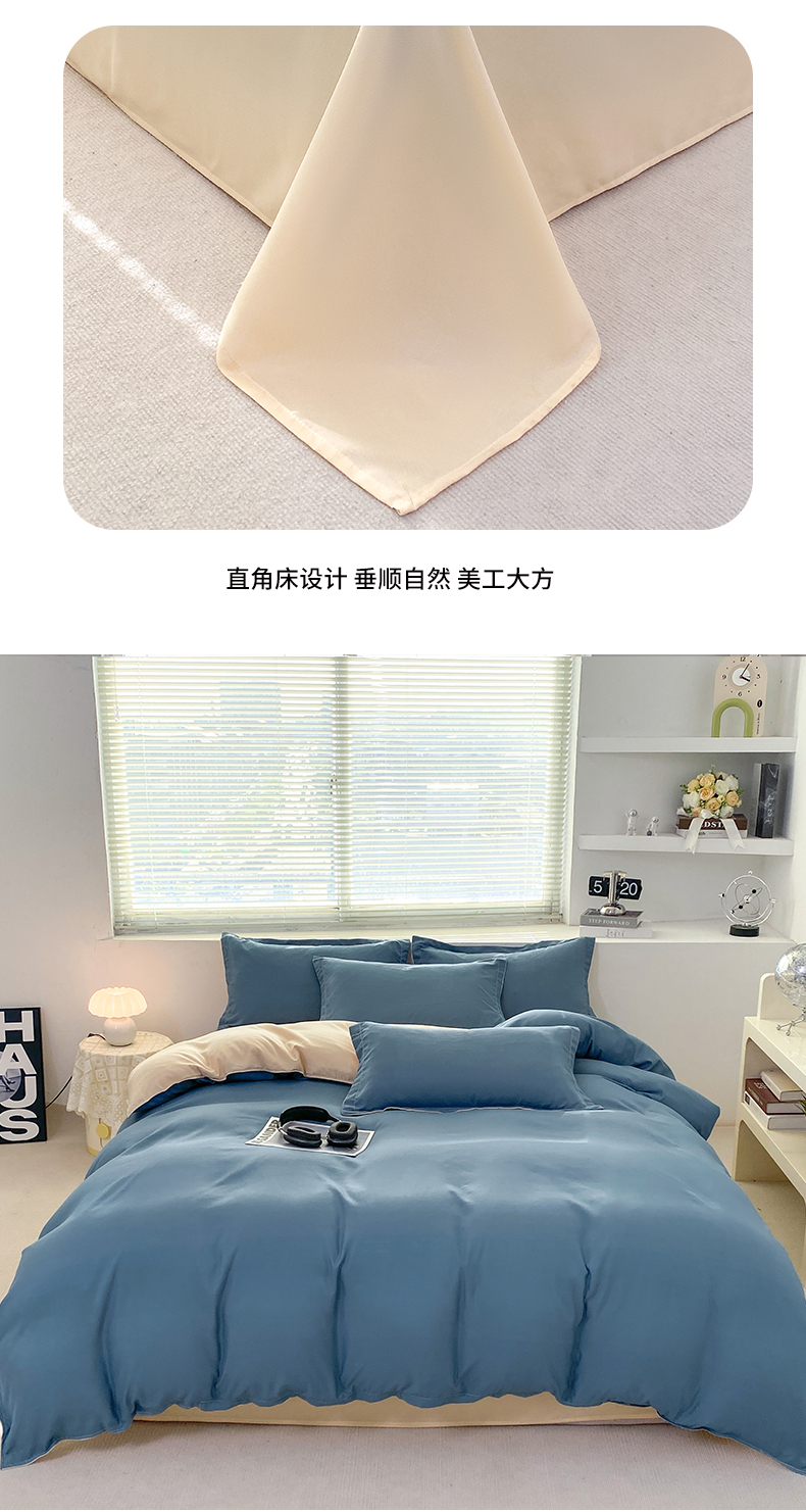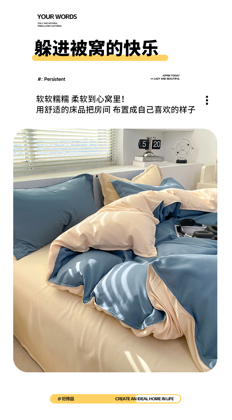 商品名称:米瑞娜 2024新款纯色双拼亲肤磨毛水洗棉四件套 海蓝奶茶