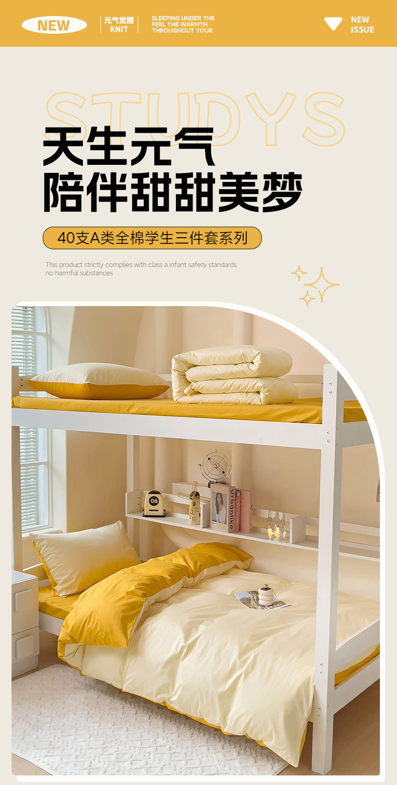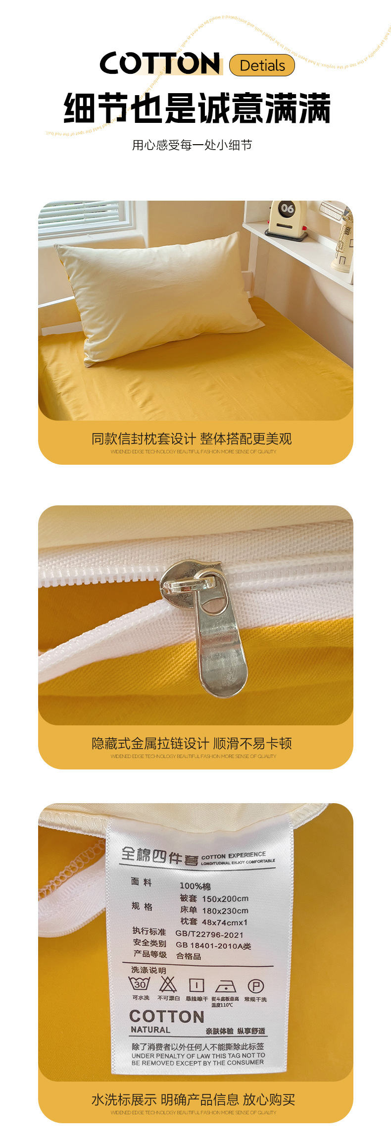 当前位置: 91家纺网 > 商品网购 > 床品套件 > 三件套 > 泽西家纺 2024新款A类加密全棉40支13376简约风大学生宿舍双拼纯色纯棉三件套 米黄+亮黄