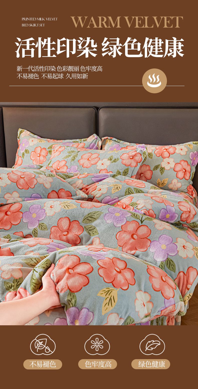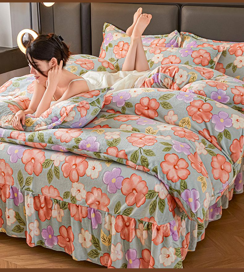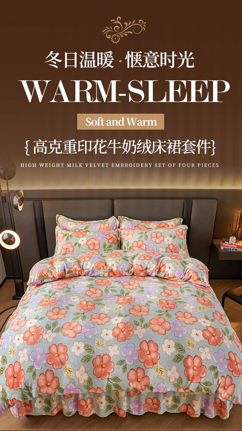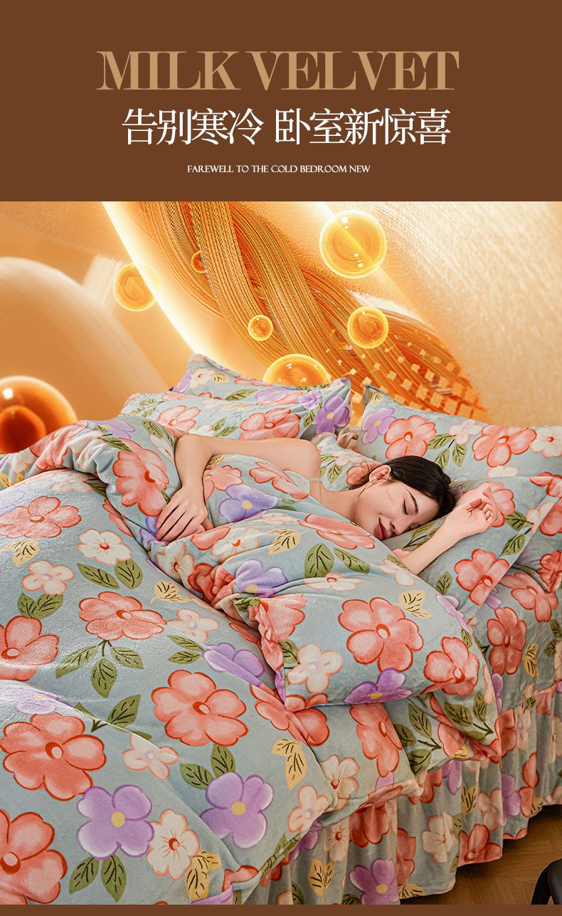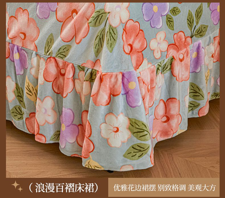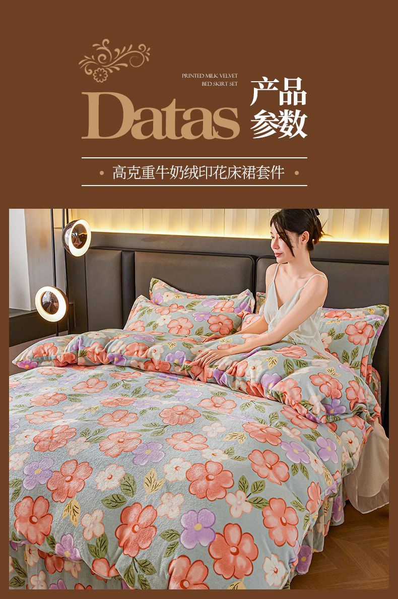 当前位置: 91家纺网 > 商品网购 > 床品套件 > 四件套 > 牛奶绒四件套 > 董韵家纺 2025新款高克重全消光牛奶绒法莱绒金貂绒印花单品被套床裙四件套(提供买家秀)伊莲的早晨