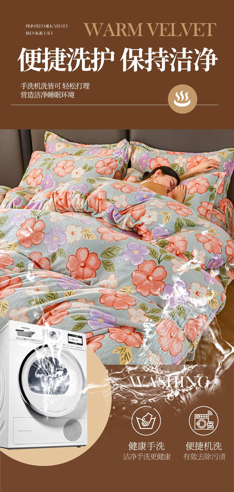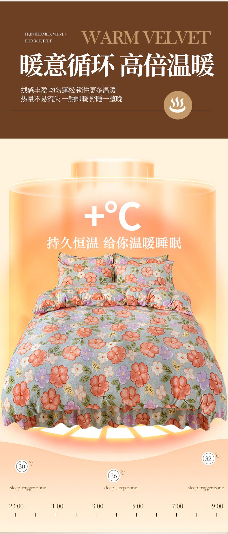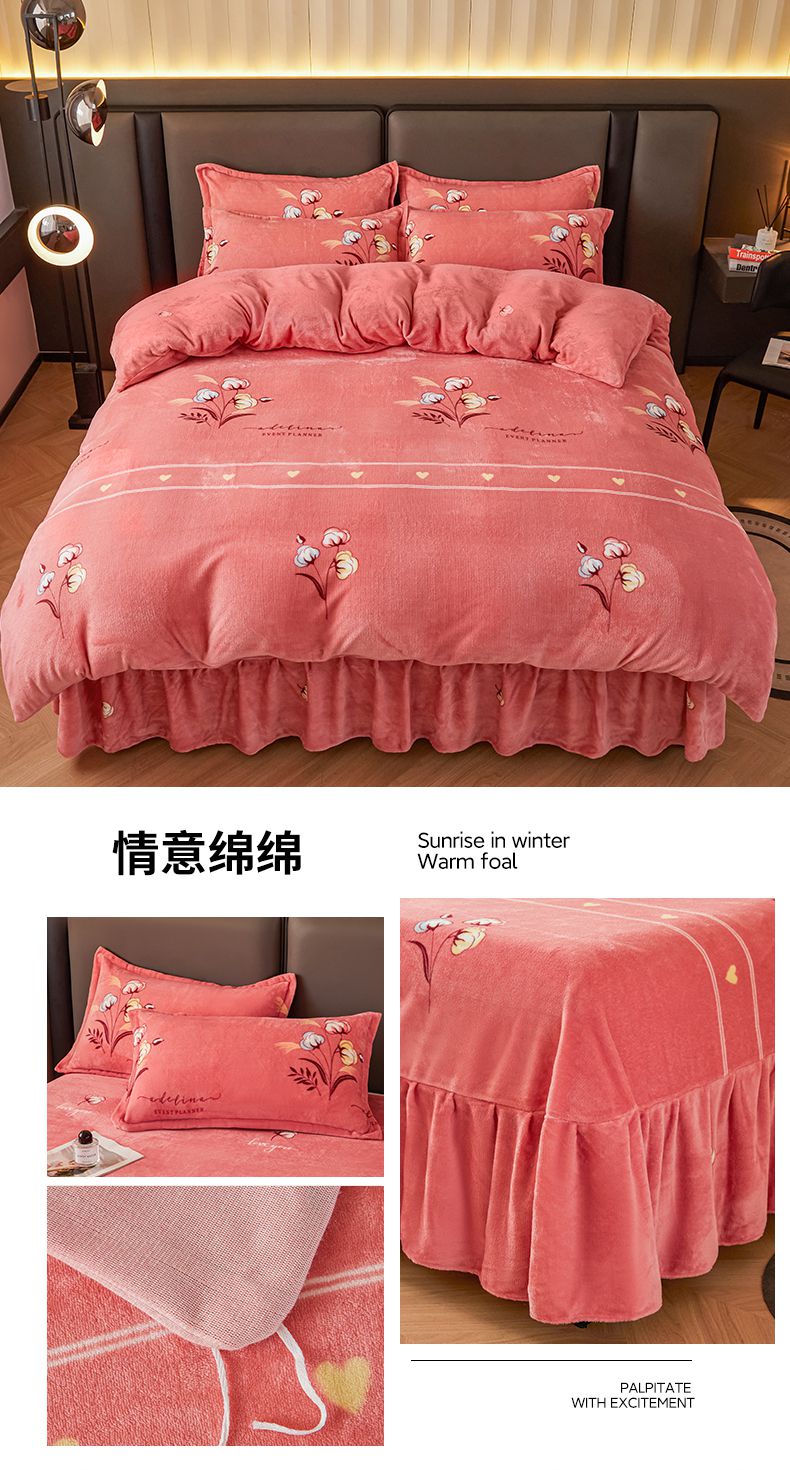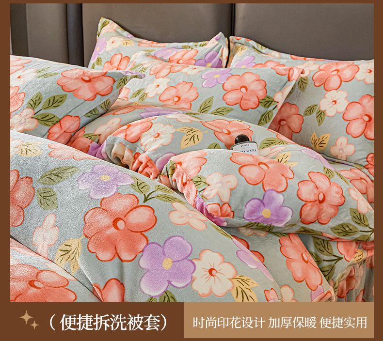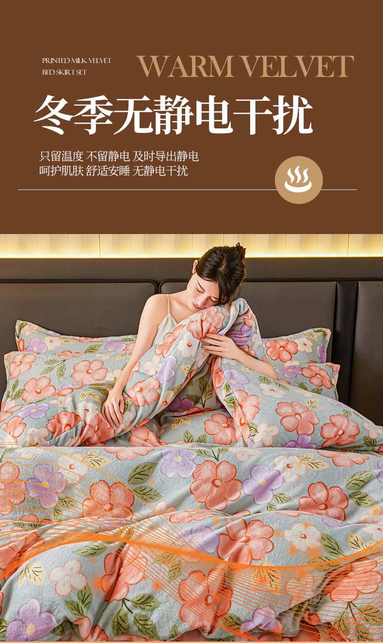 当前位置: 91家纺网 > 商品网购 > 床品套件 > 四件套 > 牛奶绒四件套 > 董韵家纺 2025新款高克重全消光牛奶绒法莱绒金貂绒印花单品被套床裙四件套(提供买家秀)伊莲的早晨