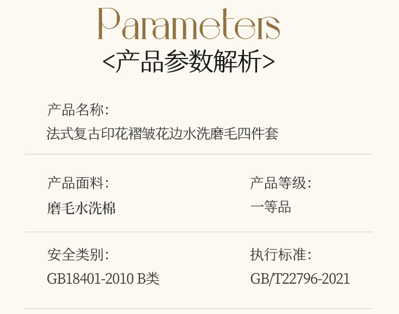 商品名称:一左一右 2024秋冬新款法式复古印花褶皱花边水洗磨毛四件套-场景一(提供买家秀) 奶油白