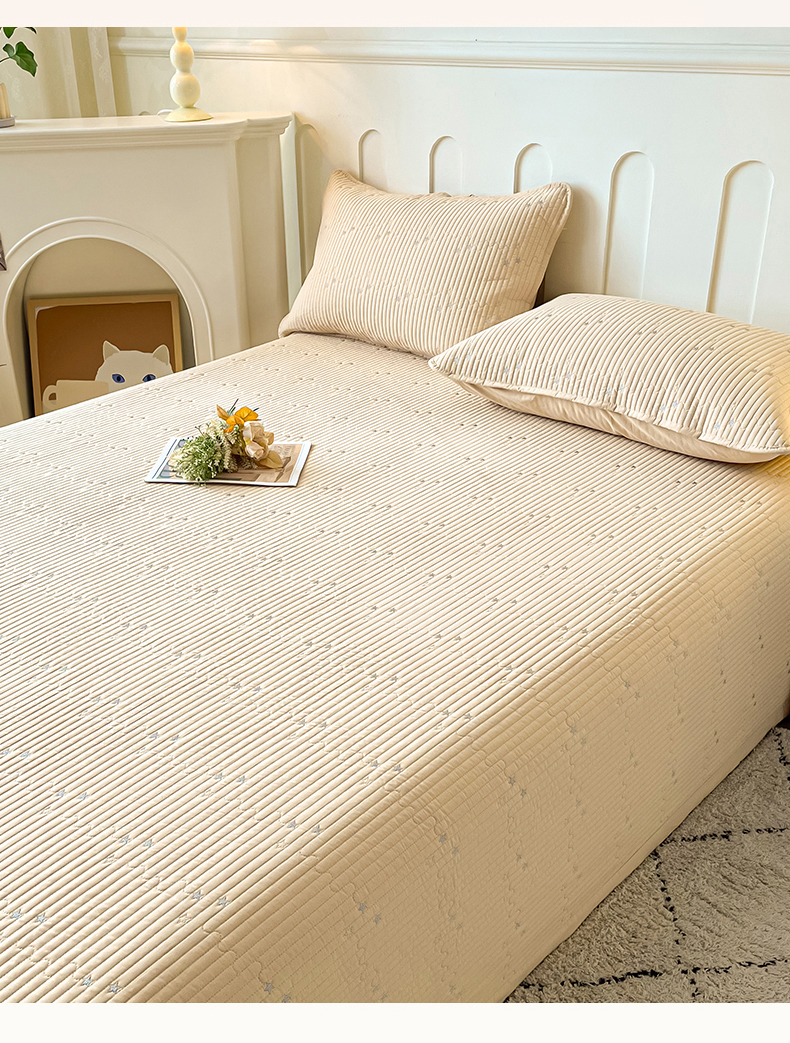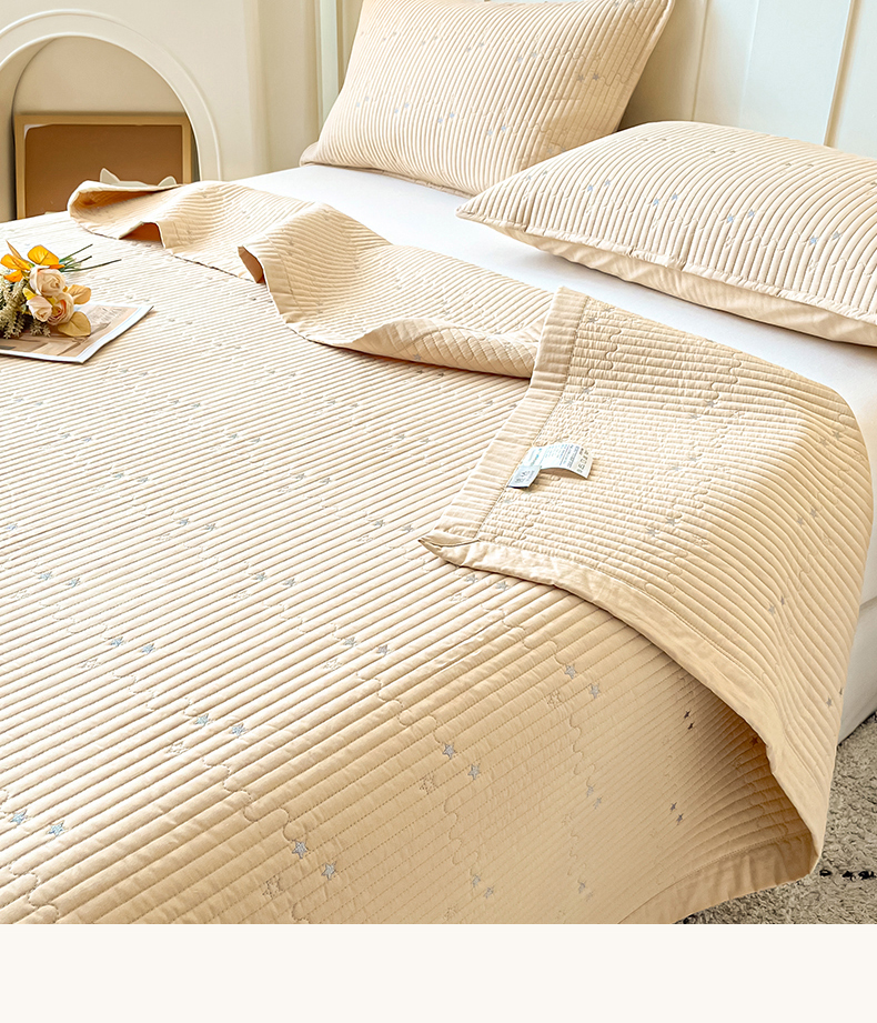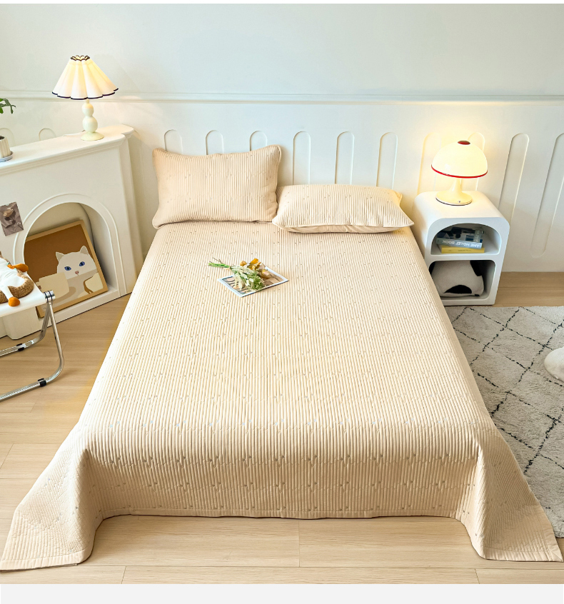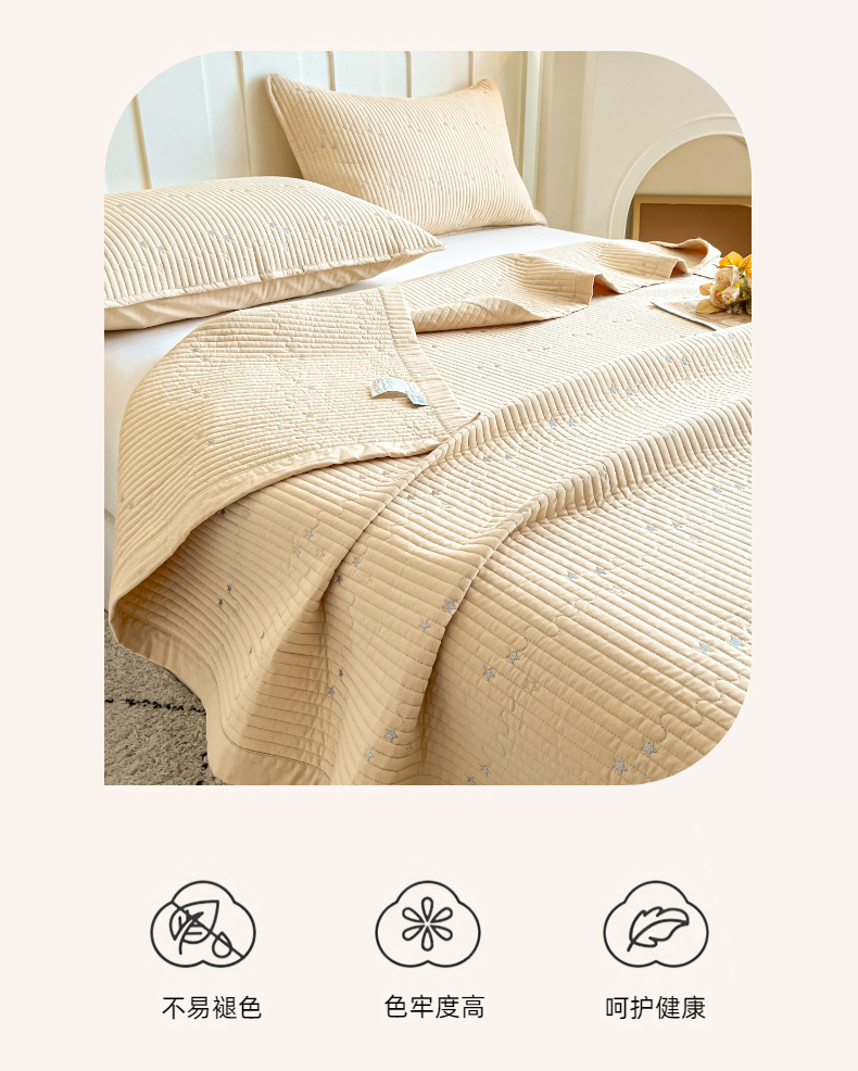 (总)上喜 2025新款全棉砂洗床盖新升级第五代,白色,湖蓝,奶油米,深灰,深咖