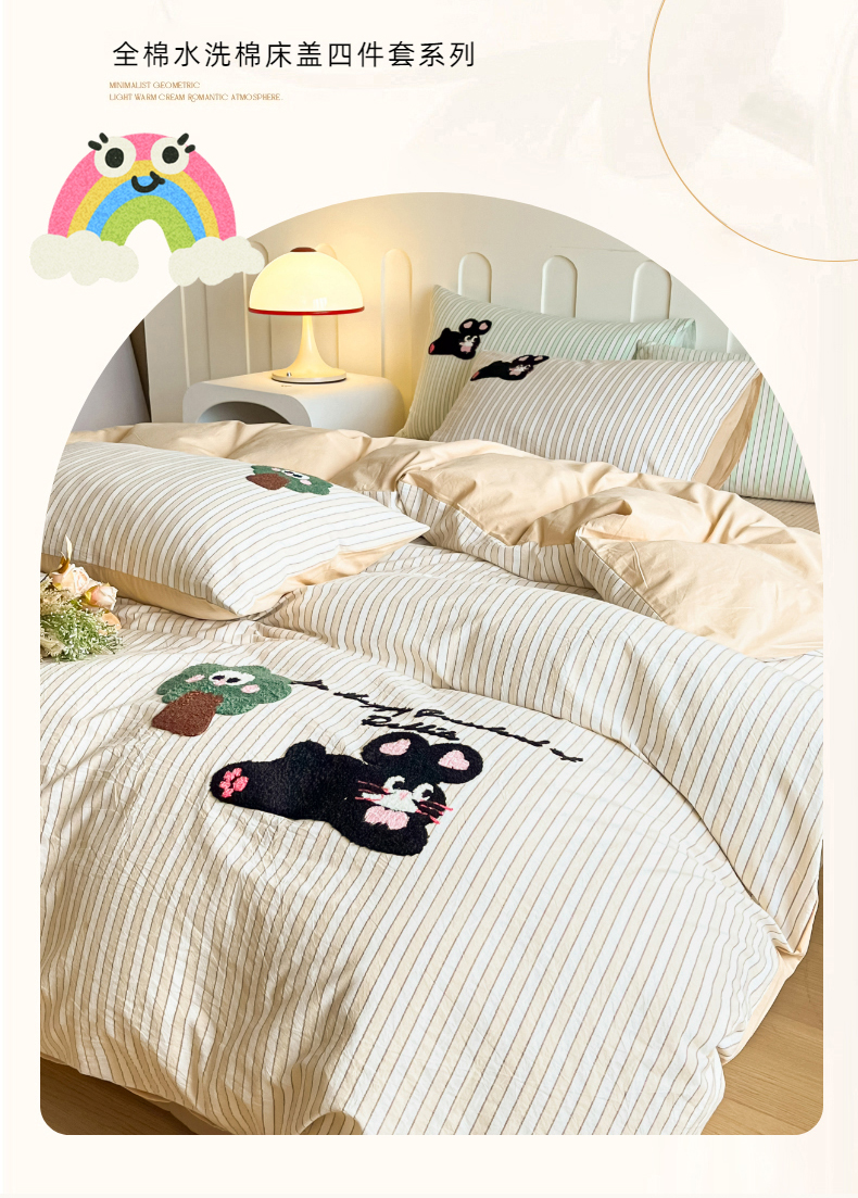 (总)热卖水洗棉喵树星空床单四件套床盖套件