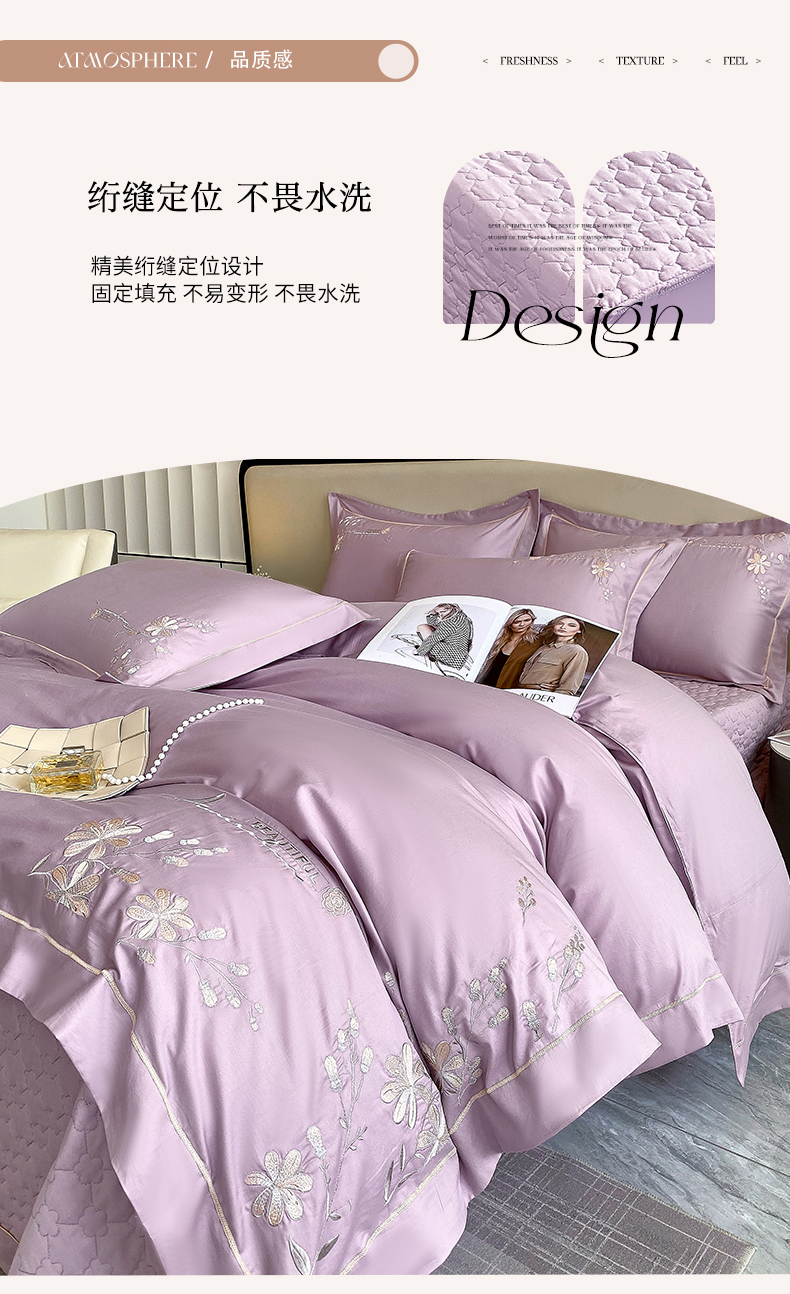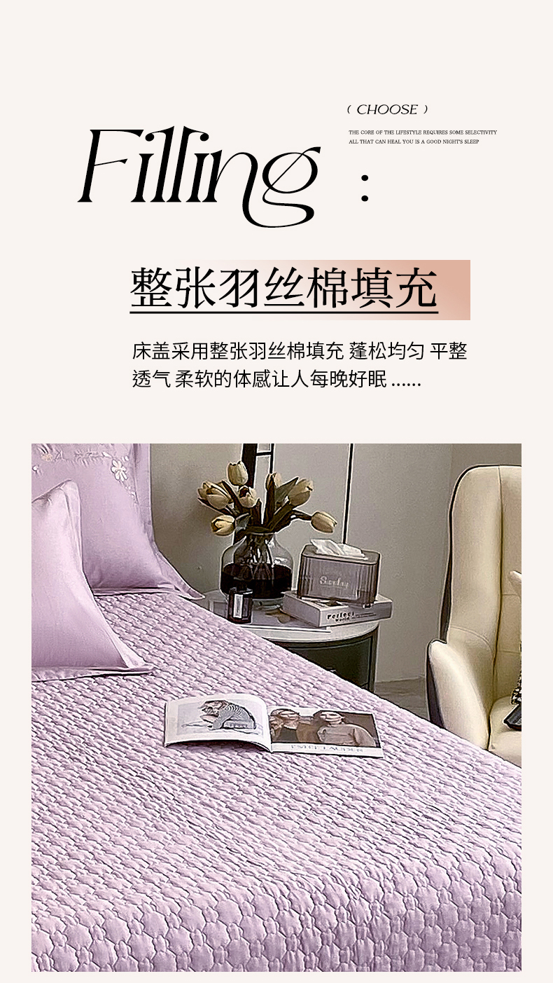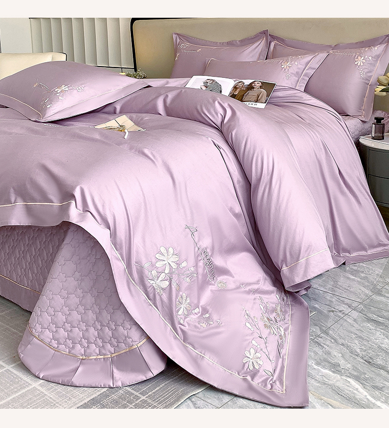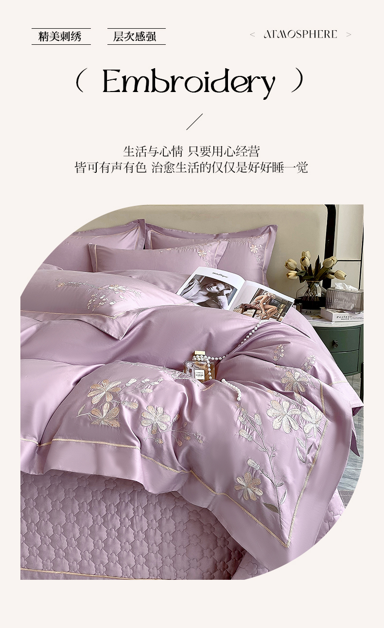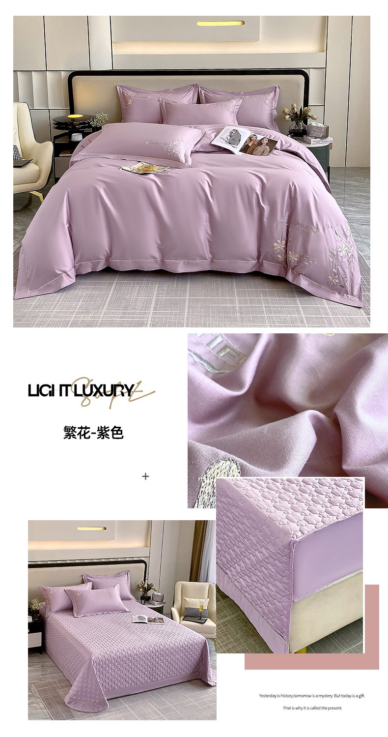 商品名称:小时代家纺 2024新款13376全活性喷气简约轻奢刺绣夹棉床盖四件套-繁花 繁花-紫色