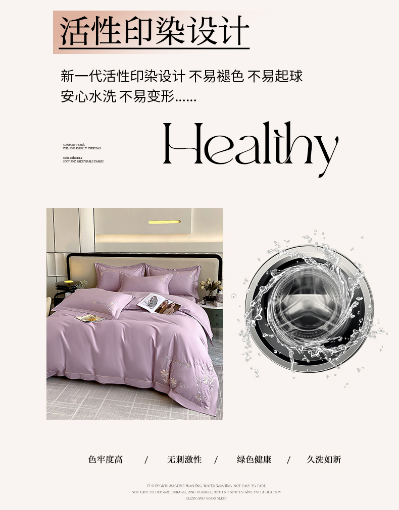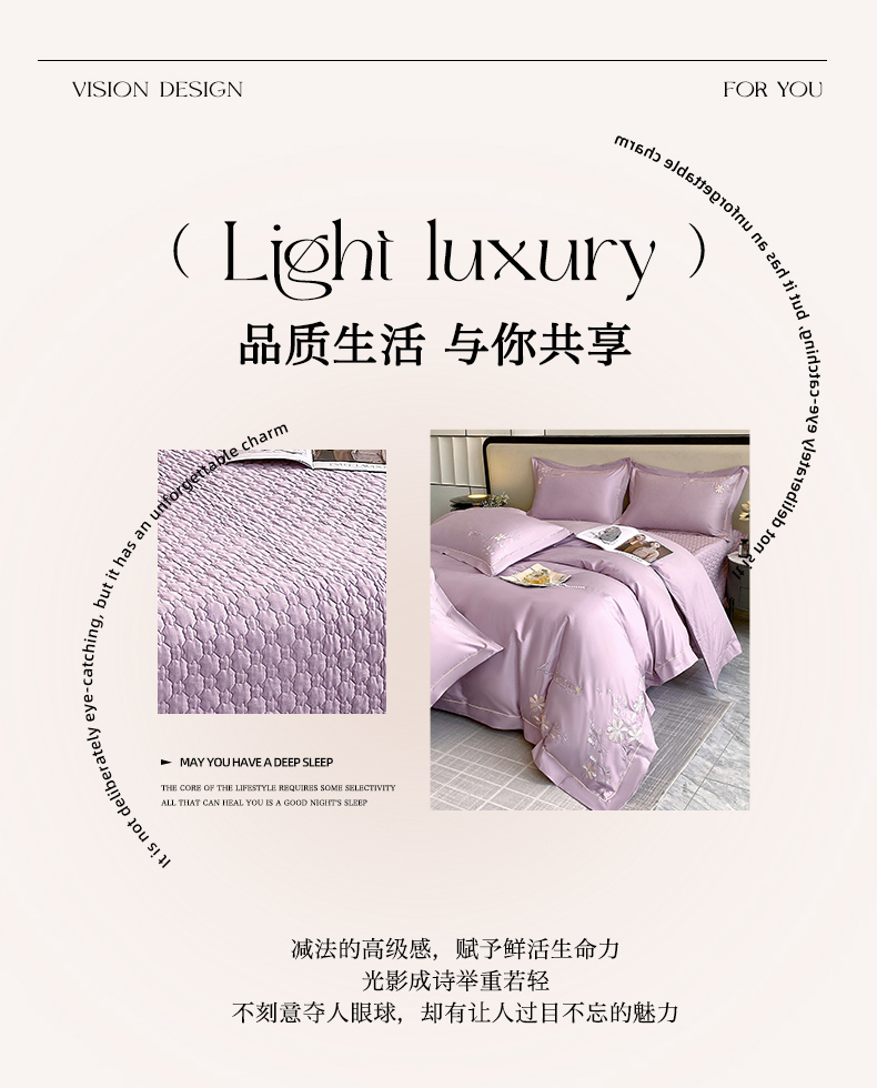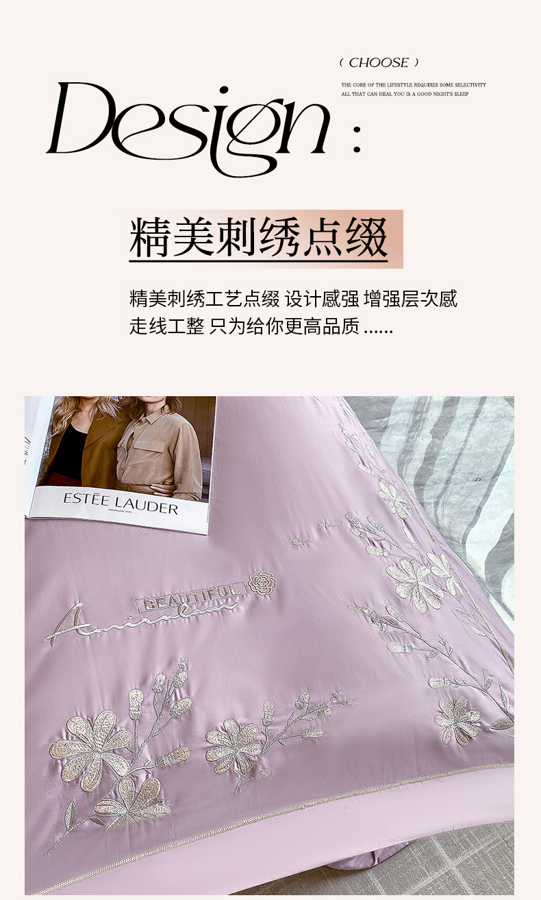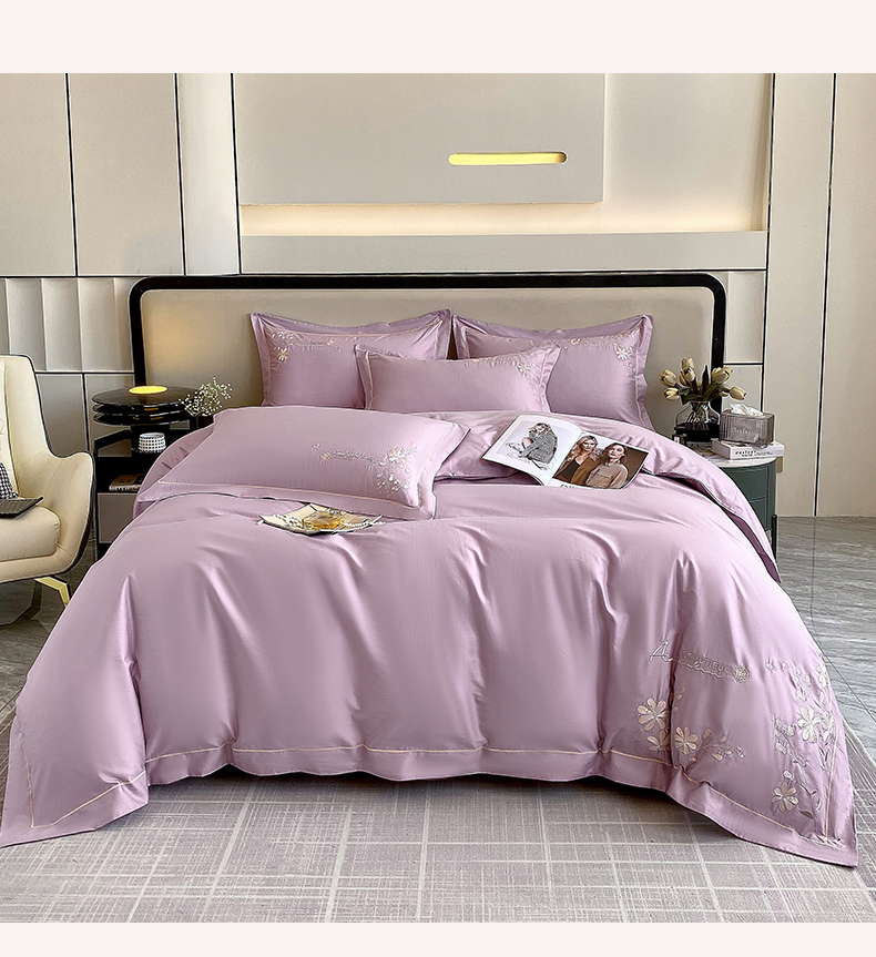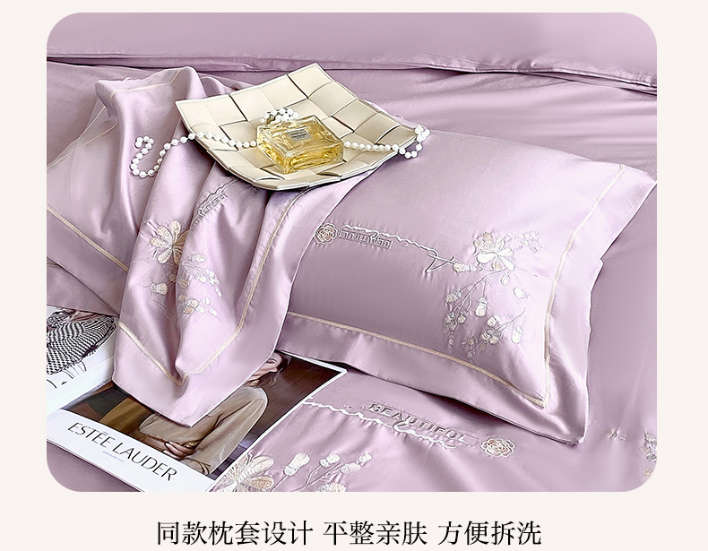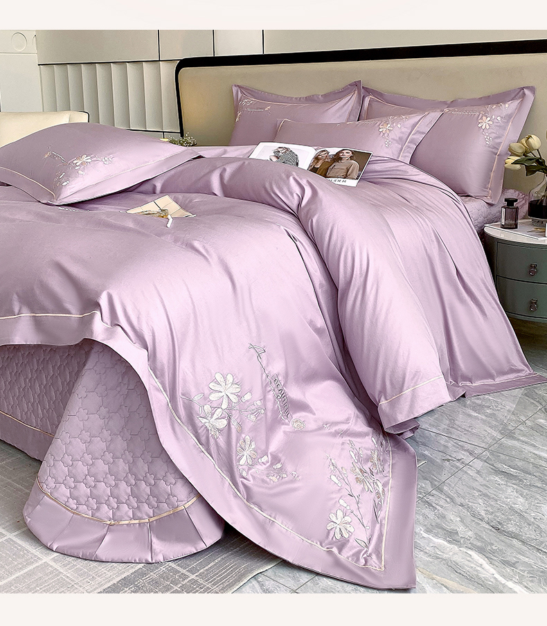 商品名称:小时代家纺 2024新款13376全活性喷气简约轻奢刺绣夹棉床盖四件套-繁花 繁花-紫色