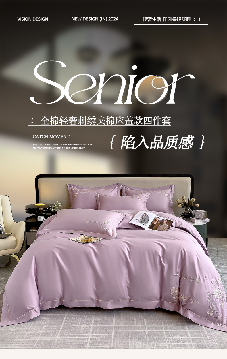 (总)小时代家纺 2025全棉活性喷气简约轻奢刺绣夹棉床盖款四件套-雅韵,雅韵-橙色,雅韵-灰兰,雅韵-青绿,雅韵-香槟,雅韵-胭粉,雅韵-紫色