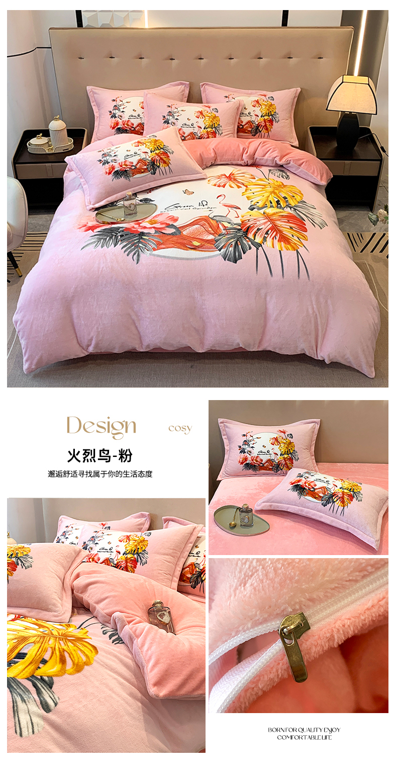 商品名称:喜梦缘 2025新款大版花卉牛奶绒四件套 火烈鸟-粉
