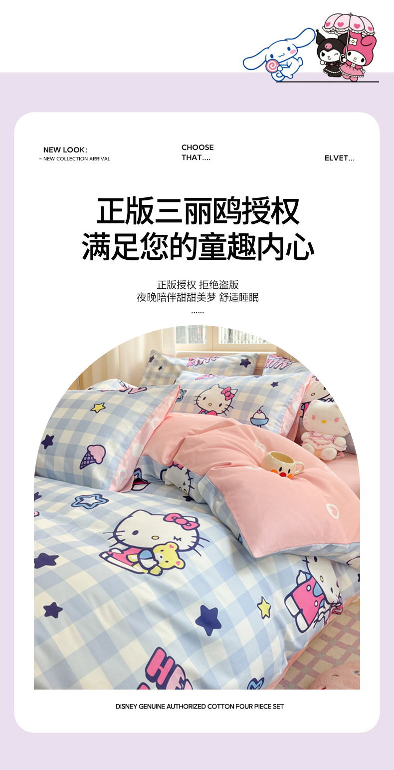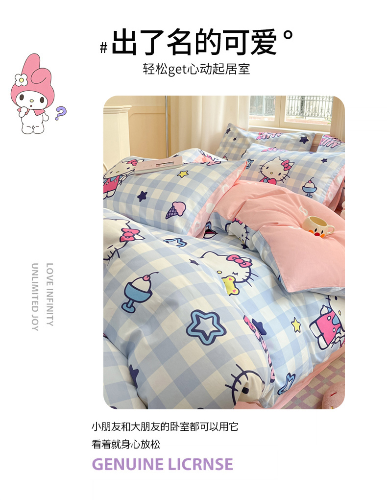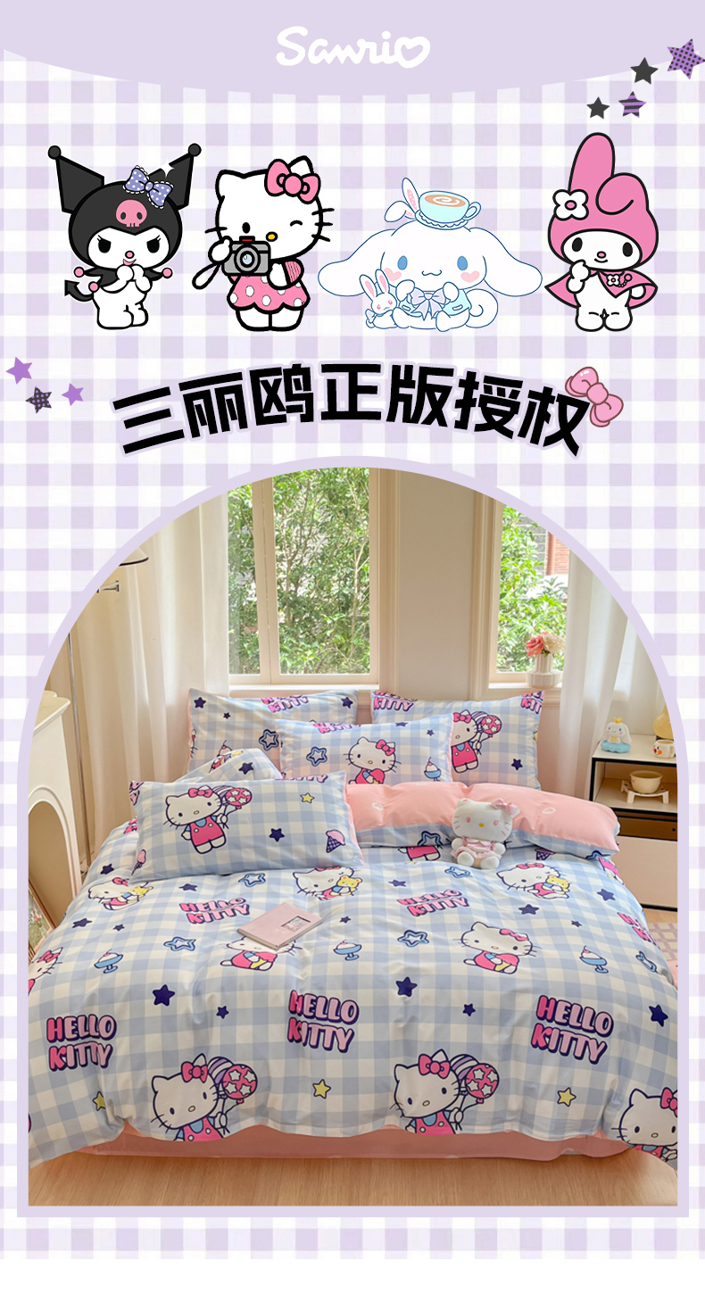 当前位置: 91家纺网 > 商品网购 > 床品套件 > 四件套 > 全棉普通四件套 > 博雅 2024新款三丽鸥全棉印花卡通四件套 气球KT