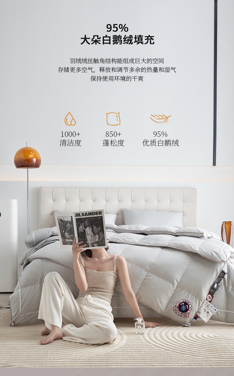 (总)岚司羽 2024新款全棉95%优质白鹅绒抗菌子母被--模特