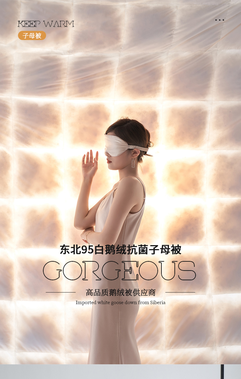 商品名称:(总)岚司羽 2024新款全棉95%优质白鹅绒抗菌子母被--模特